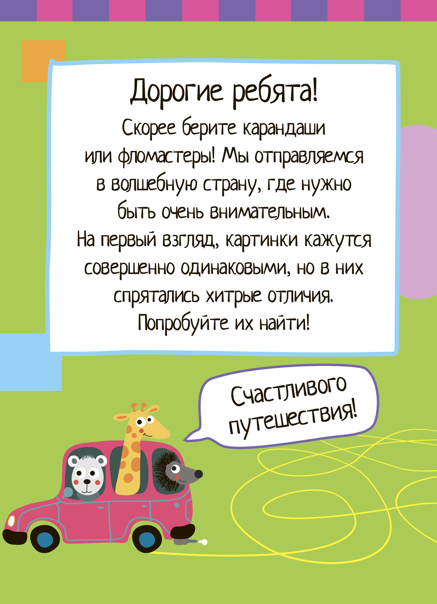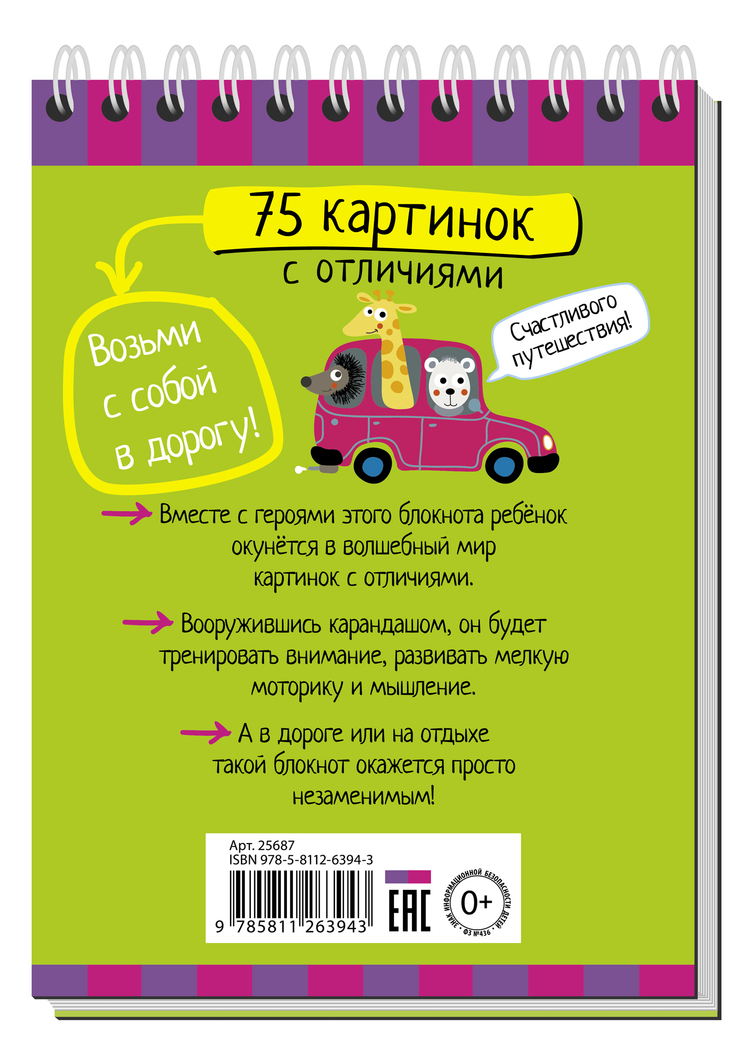 Открыв этот блокнот, ребёнок увидит картинки, которые только на первый взгляд кажутся одинаковыми. На самом деле в них спрятаны хитрые отличия, которые нужно найти. Выполняя задания, ребёнок будет развивать внимание, мелкую моторику и мышление. Детям от 7 лет.