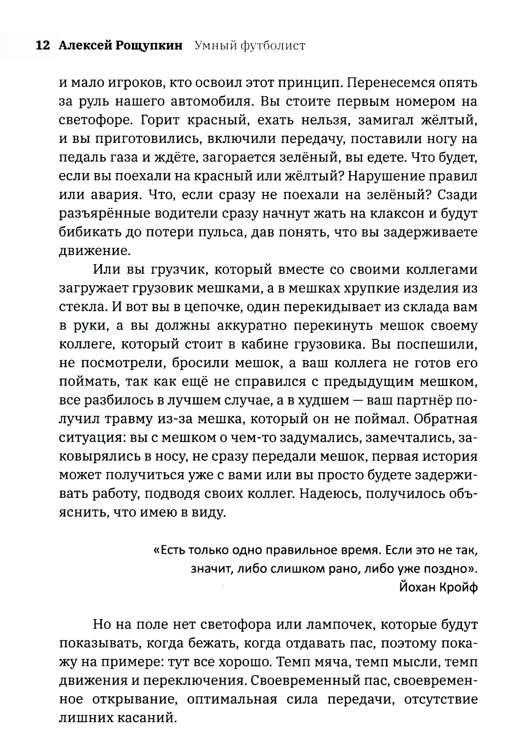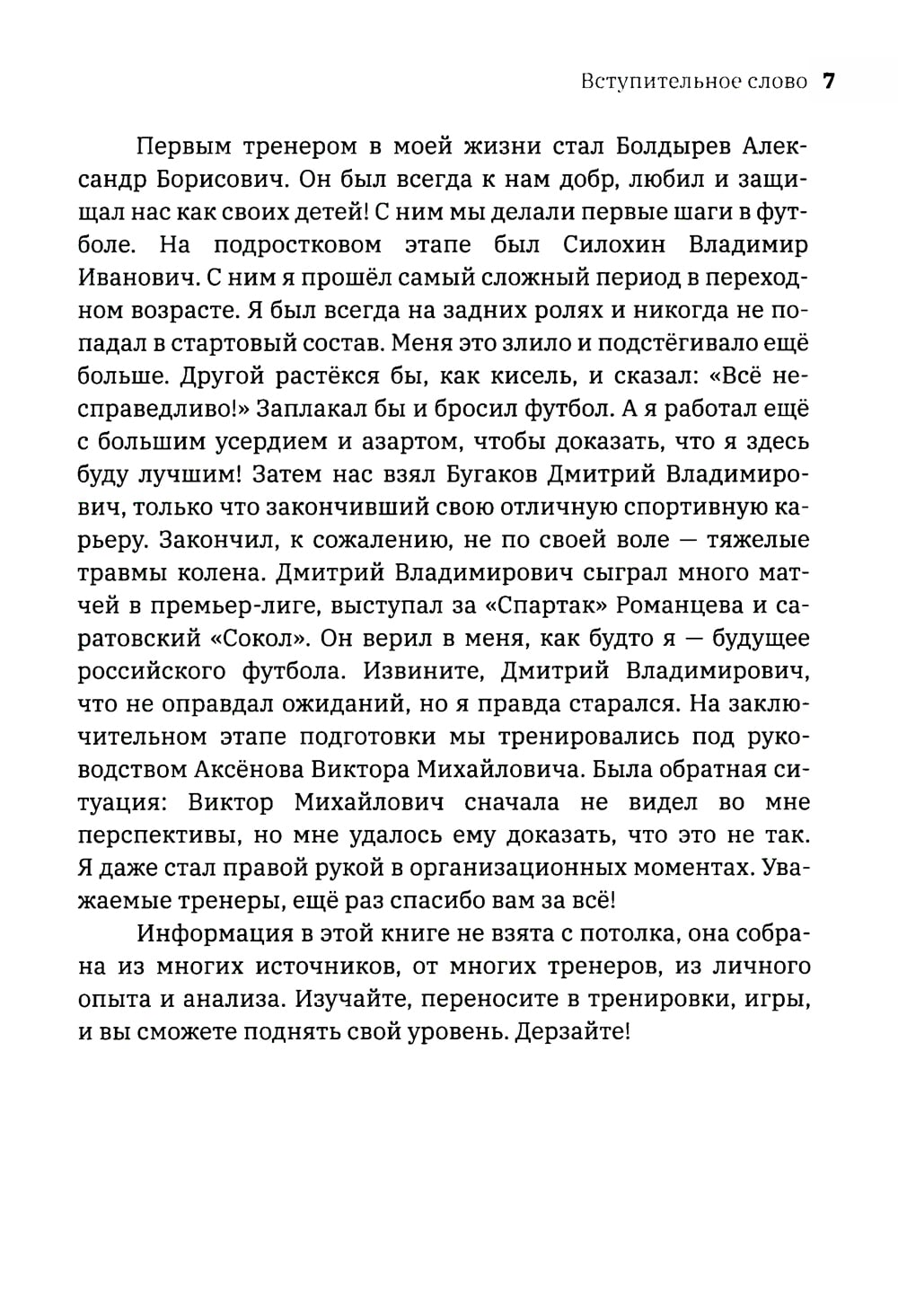 Книга, затрагивающая широкий диапазон футбольных уровней, предназначена для игроков всех возрастов и навыков - от маленьких детей в возрасте 7-8 лет до опытных профессионалов и любителей. Кроме того, она станет полезным источником знаний для тренеров и страстных футбольных энтузиастов. Особое внимание уделяется правильному принятию решений с мячом и без на поле, важному элементу успеха в футболе. Книга анализирует разнообразные сценарии и обучает игроков принимать обоснованные решения в различных ситуациях. Поднимаются частые ошибки, которые могут привести к потере мяча, читатели получат не только примеры, но и стратегии предотвращения подобных ситуаций. Также каждый читатель сможет отсканировать QR коды, чтобы увидеть пример для того или иного эпизода в видеоформате. Автор книги опирается на многолетний личный опыт как игрока, так и тренера, а также воспроизводит уроки искусства футбола от множества тренеров, стремящихся проникнуть в суть игры и разгадать ее тонкости, детали и акценты.| Издательство | Рипол Классик |