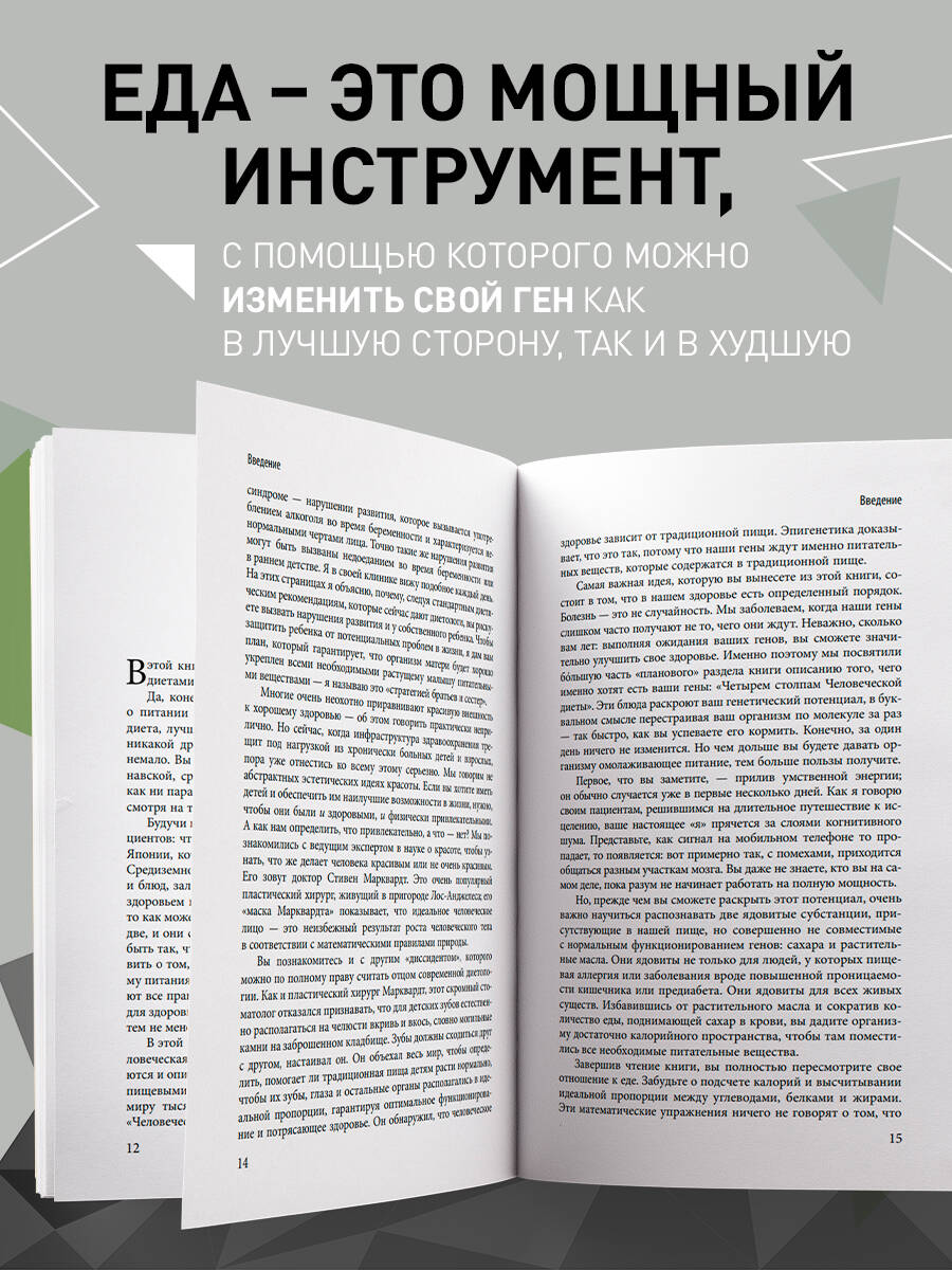 Наша ДНК уникальна. Она способна включать и выключать гены, отвечающие за форму носа и губ, развитие заболеваний и великолепное здоровье. Но как она узнает, что ей делать? Ответ нашли ученые-эпигенетики: из еды! Мы привыкли думать о еде, как о наборе белков, жиров и углеводов. Но это ошибка. Еда - это информация, которую получает наш организм об окружающей среде. Именно еда определяет, какой ген включится в нашей ДНК, а какой выключится. Вот эксперимент: свинок стали кормить едой без витамина А - и у появившихся на свет маленьких поросят не развились глаза. Вообще. Это произошло, так как отсутствие витамина А в пище привнесло в ДНК поросят информацию о том, что они живут в полной темноте и глаза им не нужны! Наш организм реагирует точно так же. Но ведь как-то человечество выжило? Конечно. В кухнях всего мира сосредоточены 4 столпа идеальной еды для красоты и здоровья. Именно они дали нам шанс на победу в генетической лотерее. Но сегодня есть два продукта-убийцы, которые сводят на нет наши шансы родиться красивыми и жить здоровыми. Какие? Раскройте книгу, переВЕРНИТЕ свой мир.| Издательство | ООО "Издательство "Эксмо" |