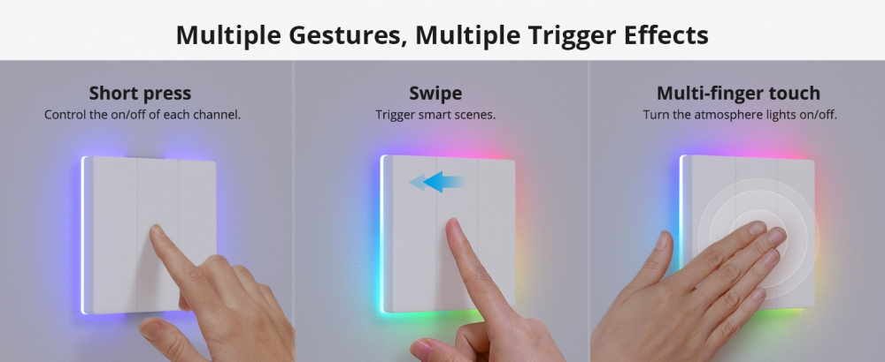 <p>Умный настенный выключатель Sonoff T5-4C-86</p> <p>Технические детали:</p> <ul> <li>Напряжение: AC 100-240V 50/60Hz</li> <li>Максимальный ток: 10A (на канал)</li> <li>Мощность: 2200 Вт (на канал)</li> <li>Беспроводная связь: Wi-Fi 2,4 ГГц IEEE 802.11 b/g/n</li> <li>Размеры: 86 x 86 x 41,5 мм</li> </ul> <p>Особенности:</p> <ul> <li><strong>Четыре канала:</strong> Этот выключатель имеет четыре отдельных канала, что позволяет управлять четырьмя различными осветительными устройствами или приборами.</li> <li><strong>Управление по Wi-Fi:</strong> Вы можете управлять выключателем дистанционно с помощью приложения eWeLink на телефоне или планшете.</li> <li><strong>Таймеры и сцены:</strong> Вы можете установить таймеры, чтобы выключатель автоматически включался и выключался в определенное время, или создать сцены с различными настройками выключателя.</li> <li><strong>Совместимость с Amazon Alexa, Google Assistant и Siri:</strong> Вы можете управлять выключателем с помощью голоса, используя помощников "умного дома".</li> <li><strong>Сенсорное управление:</strong> выключатель оснащен сенсорными кнопками, которыми можно управлять вручную.</li> <li><strong>Стеклянная панель:</strong> Элегантный дизайн с панелью из закаленного стекла.</li> <li><strong>Защита:</strong> Выключатель имеет защиту от перегрева и перегрузки.</li> </ul> <p> </p>