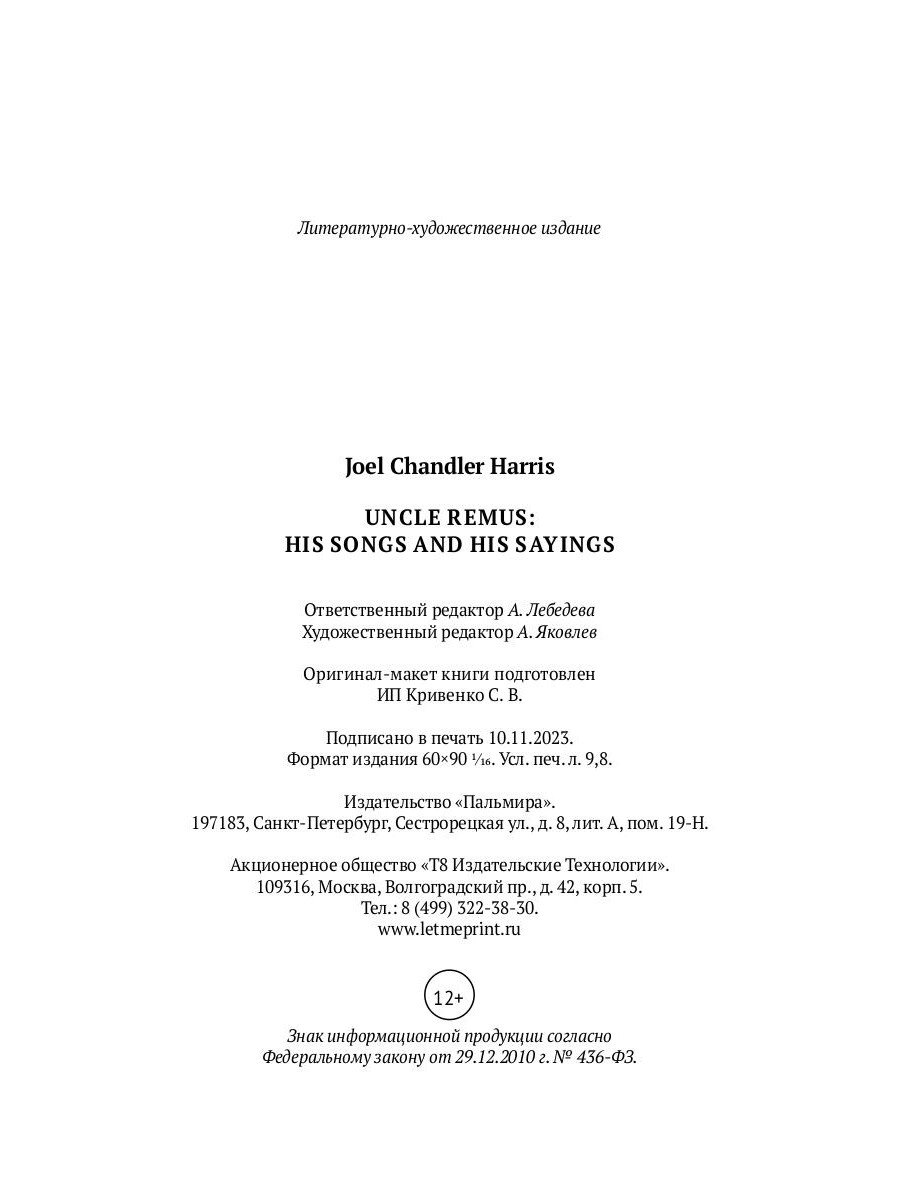 | Автор/составитель | Харрис Джоэл Чандлер |