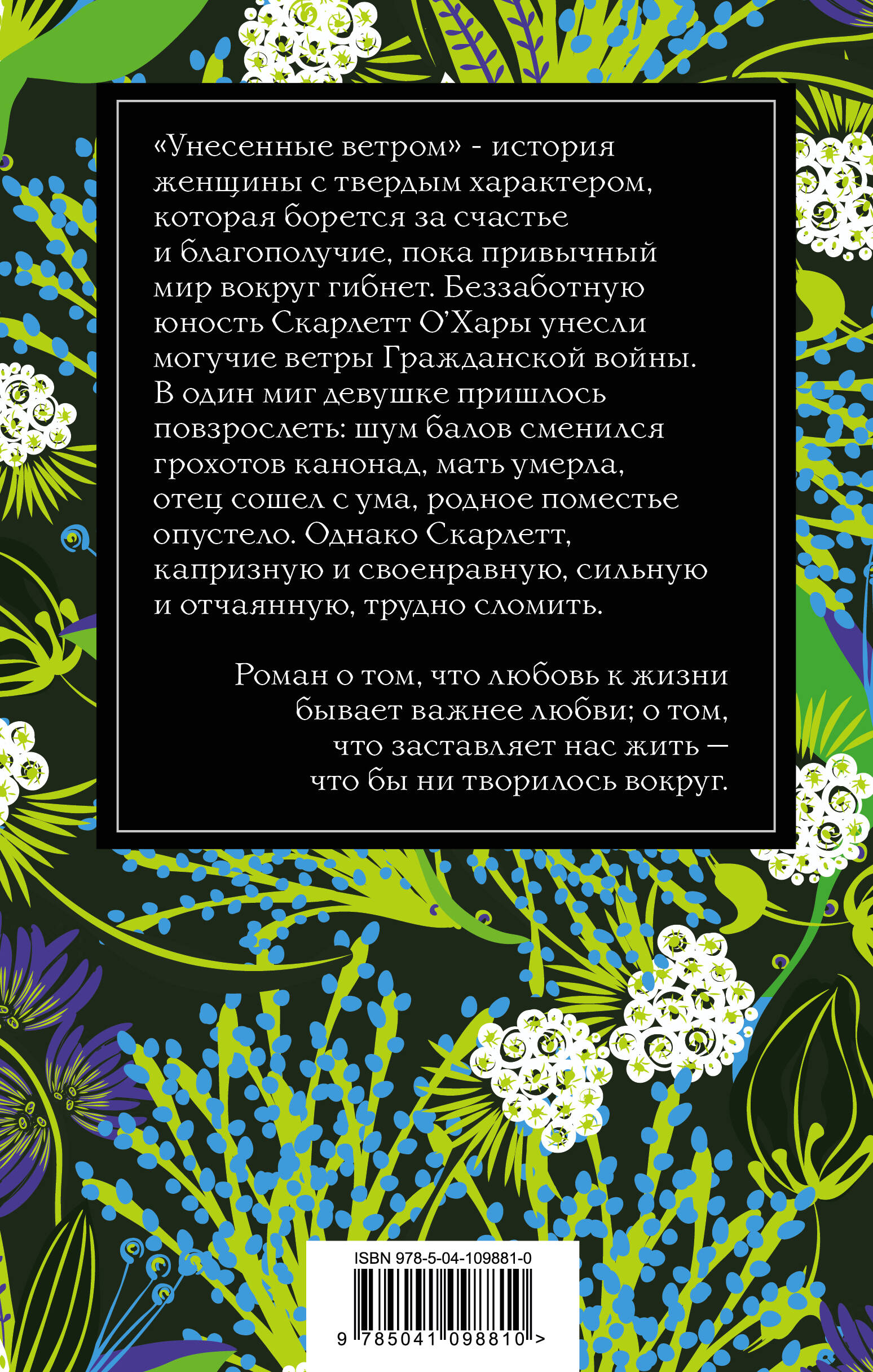 История женщины с твердым характером, которая борется за счастье и благополучие, пока привычный мир вокруг гибнет. Беззаботную юность Скарлетт О'Хары унесли могучие ветры Гражданской войны. В один миг девушке пришлось повзрослеть: шум балов сменился грохотом канонад, мать умерла, отец сошел с ума, родное поместье опустело. Однако Скарлетт, капризную и своенравную, сильную и отчаянную, трудно сломить. Роман о том, что любовь к жизни бывает важнее любви; о том, что заставляет нас жить - что бы ни творилось вокруг.| Издательство | ООО "Издательство "Эксмо" |