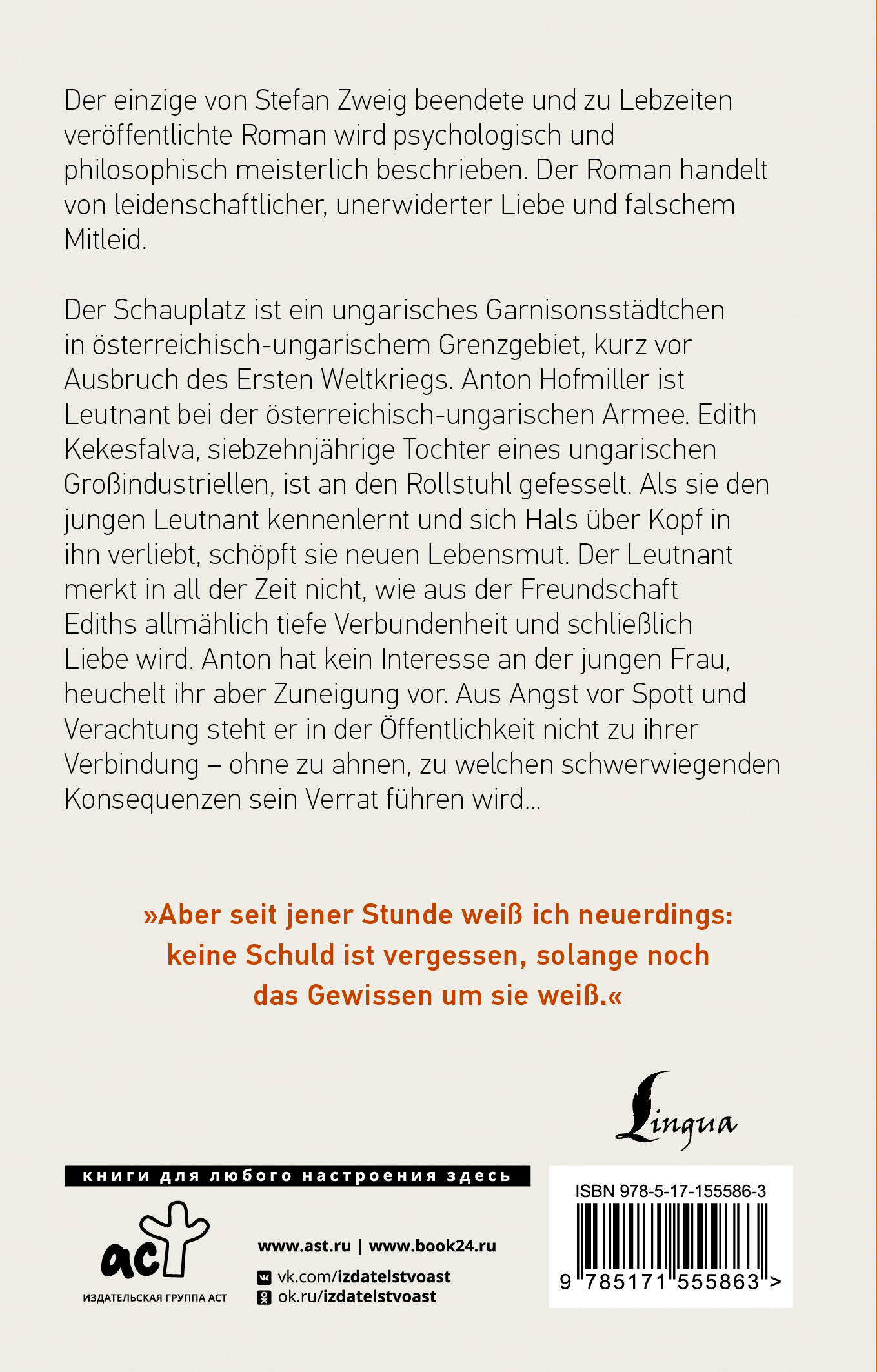 Издание на немецком языке. Психологический роман австрийского писателя Стефана Цвейга "Нетерпение сердца" - это трагическая история о неразделенной любви между 17-летней дочерью богатого венгерского землевладельца Эдит фон Кекешфальвой, прикованной к инвалидной коляске, и молодым австрийским лейтенантом Антоном Гофмиллером. Может ли сострадание, малодушное и сентиментальное, спасти близкого человека, или же "благими намерениями вымощена дорога в ад"? Почему сердце, так страстно и искренне полюбившее, не дождалось своей счастливой судьбы? К каким серьезным последствиям приведут трусость и предательство, и сможет ли совесть все забыть и предать забвению? Как и в лучших новеллах автора, в романе мастерски описываются психологические тонкости, благодаря которым раскрываются чувства и поступки главных героев. Книга издана в неадаптированной версии. Наслаждайтесь единственным завершенным романом Стефана Цвейга в оригинале!| Издательство | ИЗДАТЕЛЬСТВО "АСТ" |