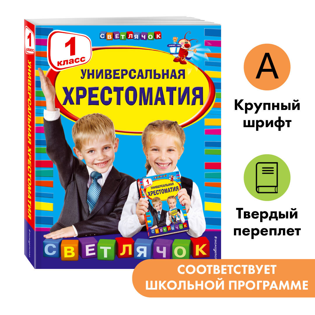 Универсальная хрестоматия для первоклассника, соответствующая ФГОС, станет хорошим дополнением к любому учебнику по литературному чтению, так как при подборе произведений составители опирались на различные программы начального образования. Большое количество прекрасных классических произведений, включенных в сборник, позволит использовать книгу не только для подготовки к урокам литературного чтения, но и для самостоятельного знакомства с высокохудожественной литературой, что позволит сформировать вкус и навык чтения у учеников, привить интерес к чтению, воспитать гармонично развитую личность и подготовить ученика к урокам внеклассного чтения. Книга включает в себя произведения устного народного творчества, стихотворения , сказки и прозу русских и зарубежных писателей, например, «Кот-ворюга» Паустовского, «Англичанин Павля», «Друг детства» Драгунского, «Булька» Толстого, «Красная Шапочка» Шарля Перро и др.| Издательство | Эксмо |