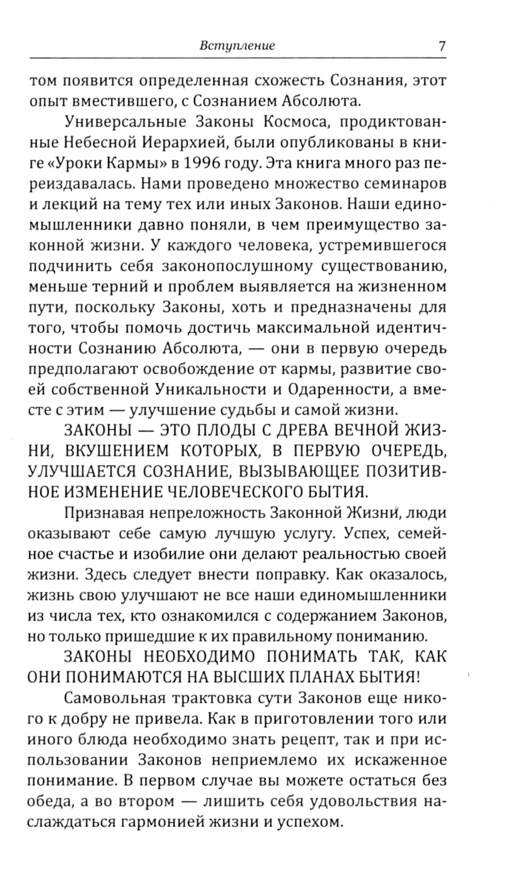 Люди каждодневно стремятся к Успеху, Гармонии в семье и Изобильному существованию и зачастую не достигают своей цели только потому, что нарушают Космические Законы. Эта книга тем знаменательна, что содержит в себе комментарии к некоторым Законам и Посланиям Небесной Иерархии, которые могут помочь человеку в улучшении его судьбы.