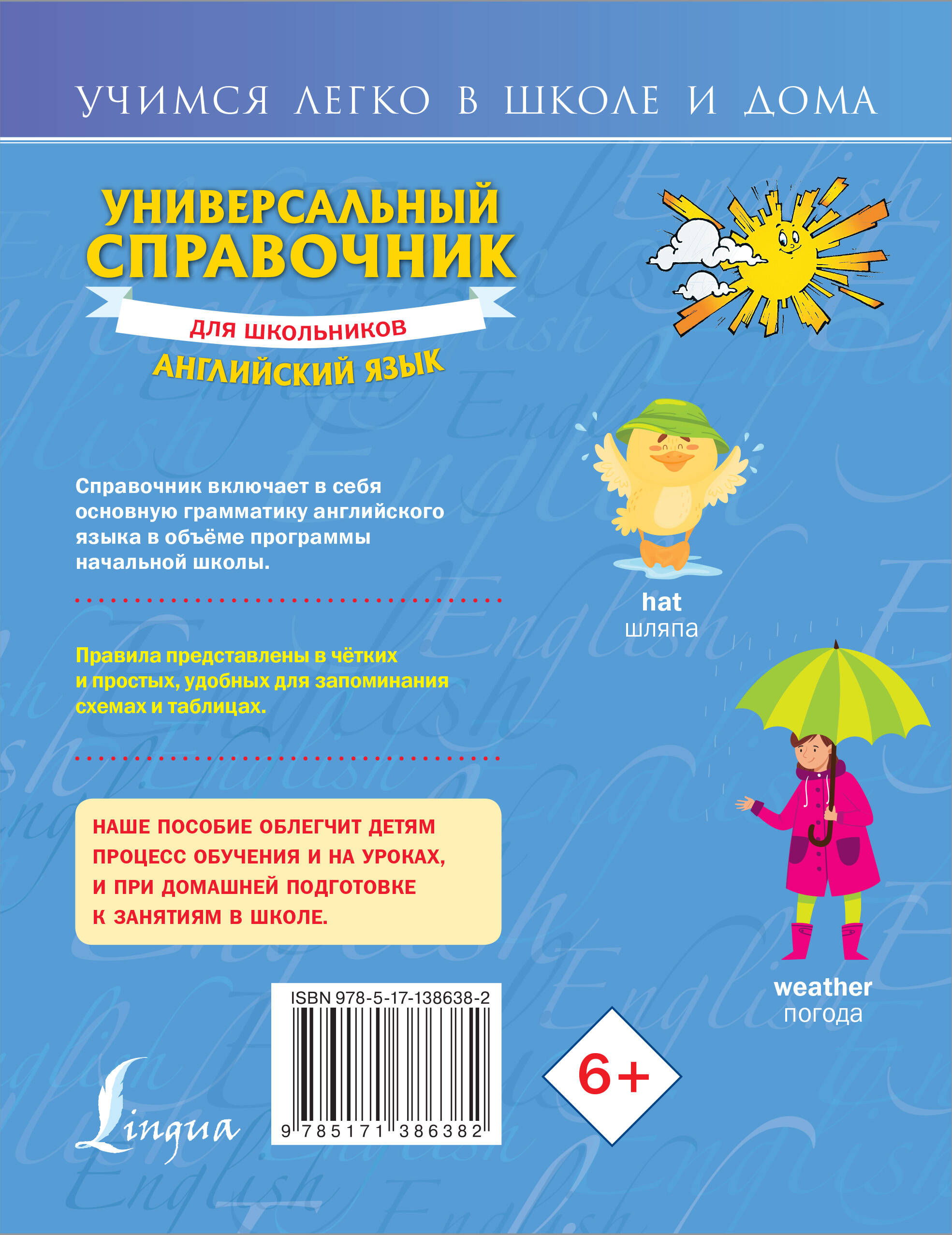 Данная книга включает всю основную грамматику английского языка. Подробно рассматриваются темы, которые вызывают наибольшие трудности у учащихся. Все правила представлены в виде четких и простых, удобных для запоминания схем и таблиц. Издание позволит школьникам заниматься дома самостоятельно или вместе со взрослыми, прибегая к их помощи в тех случаях, когда требуются какие-либо дополнительные разъяснения.