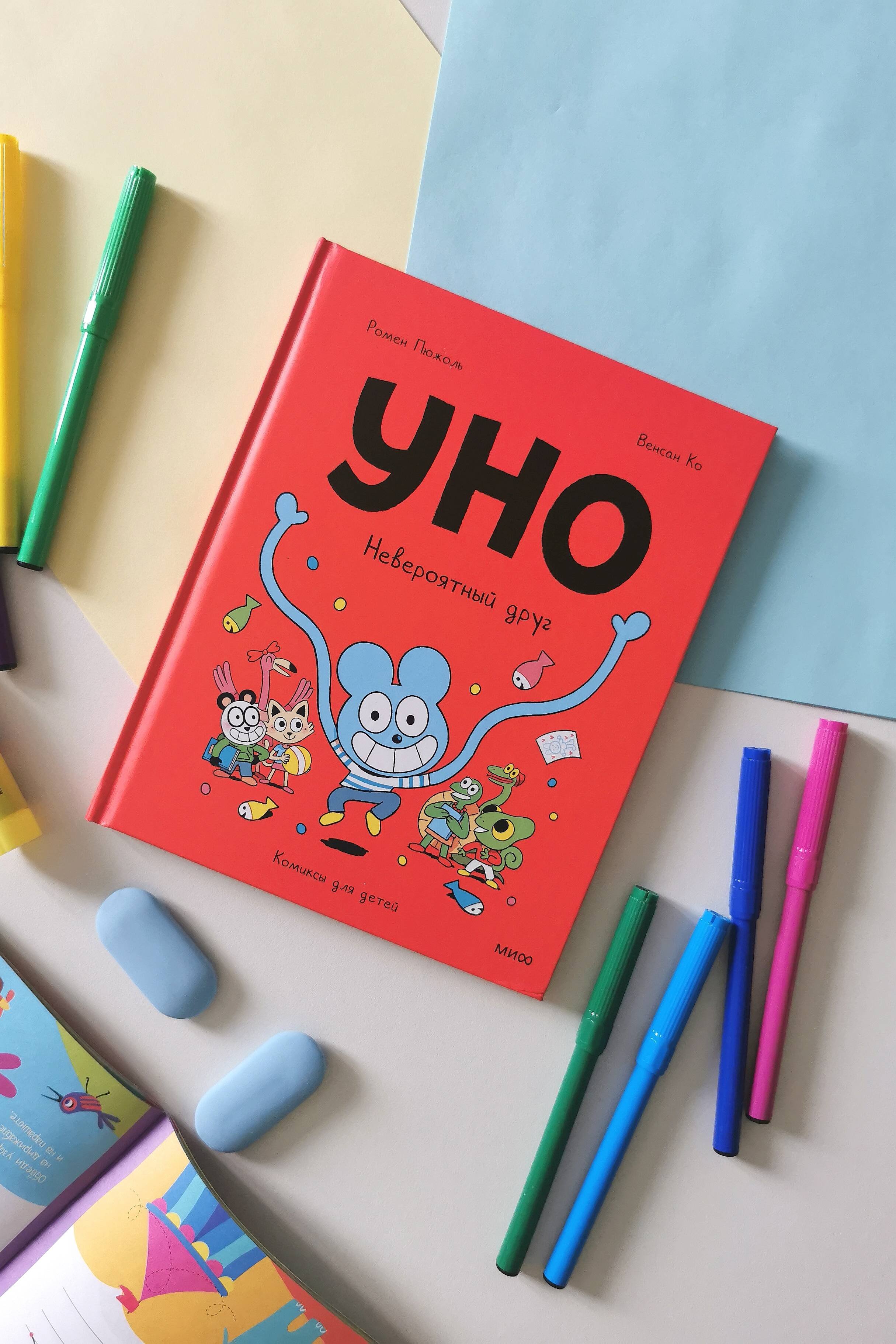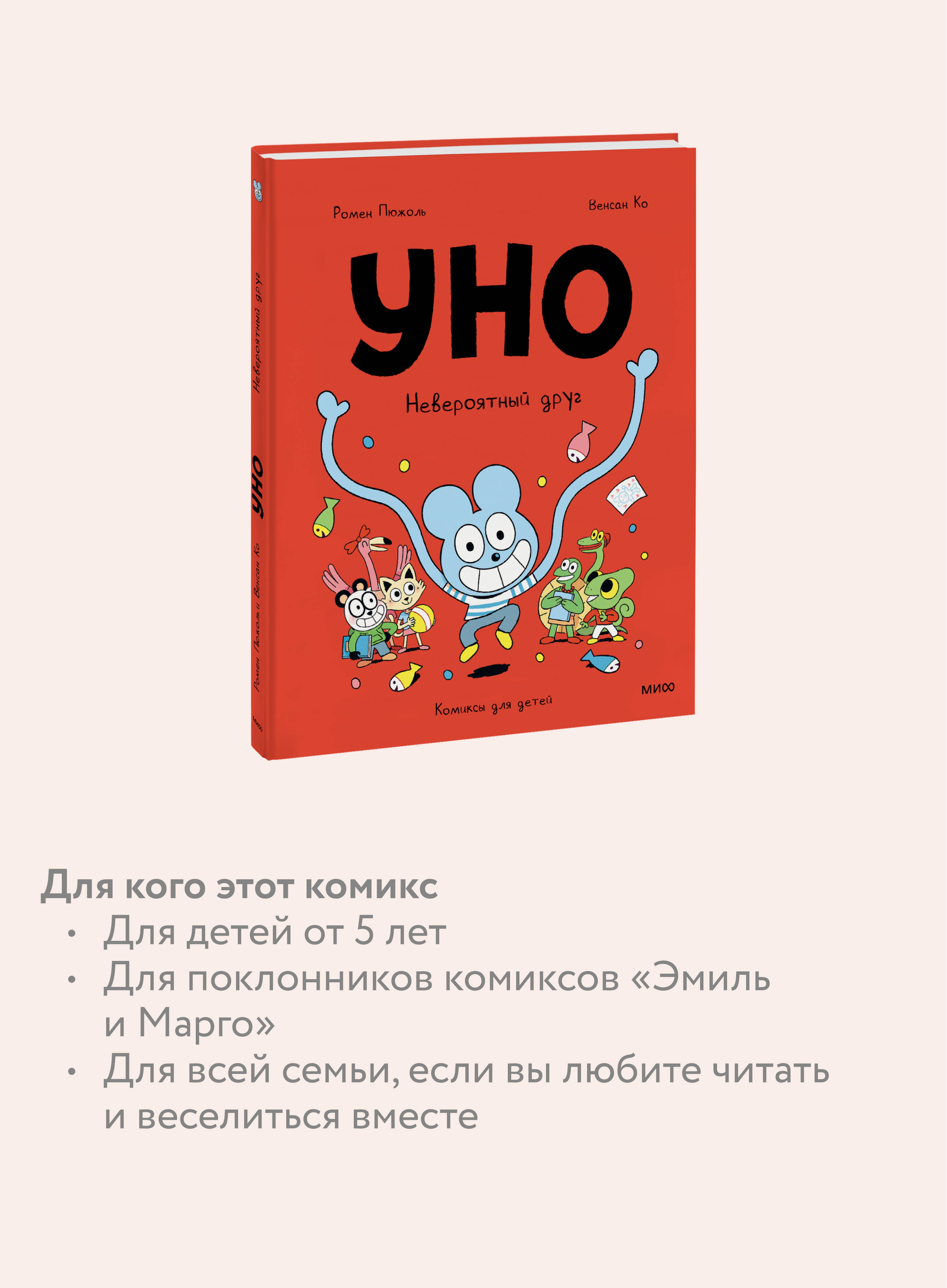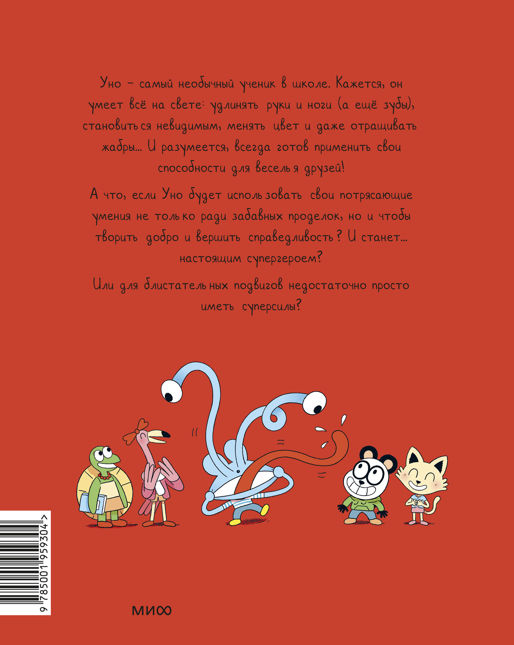Уно - самый необычный ученик в школе. Во-первых, никто не знает, что он за зверь. Во-вторых, у него уйма невероятных способностей: он может удлинять руки и ноги (а еще зубы), становиться невидимым, менять цвет и даже отращивать жабры. Все одноклассники, конечно, в восторге от невероятного друга и его забавных проделок! Однажды Уно решает использовать свои потрясающие умения не только ради веселья, но и чтобы творить добро и защищать слабых. И становится... настоящим супергероем! Что же ждет блистательного Синего Рейнджера? Ведь между подвигами нужно еще успевать как-то учиться... Фишки книги: - Емкий ситуативный юмор, понятный в любом возрасте. - Отличное визуальное оформление: хорошо проработаны детали, выражения лиц героев, эмоции очень живые и понятные без слов. - Яркие и необычные герои, которые будут близки детям. - Короткие рассказы идеально подойдут для начинающих читателей: перед сном можно прочитать 2-3 истории и спокойно засыпать. - Знакомство с серией можно начать с любого тома. - Поможет ребенку начать читать самостоятельно. Для кого эта книга: Для детей от 5 лет и их родителей. Для поклонников серии "Эмиль и Марго". Для всей семьи, если вы любите читать и веселиться вместе. Для всех любителей комиксов.