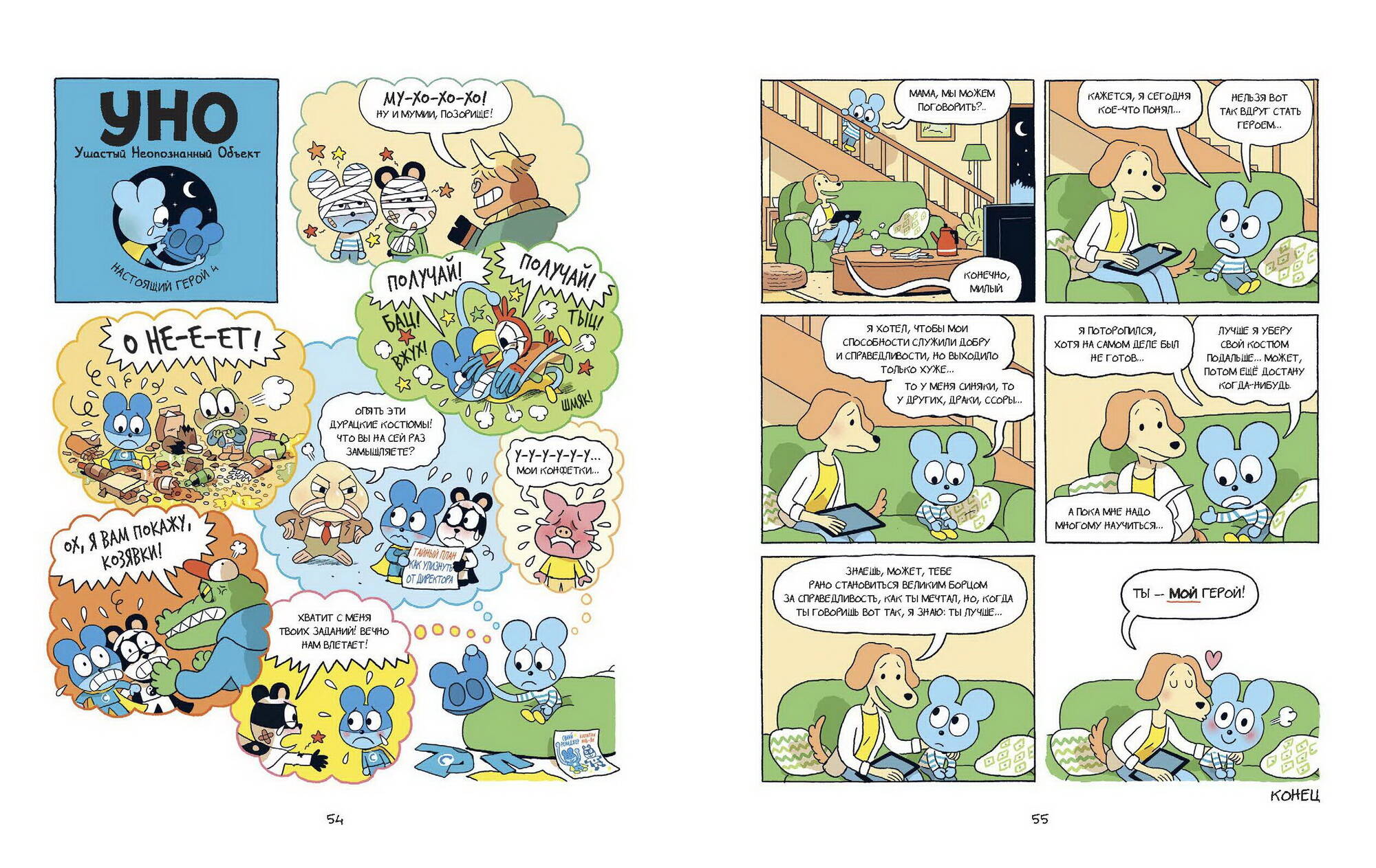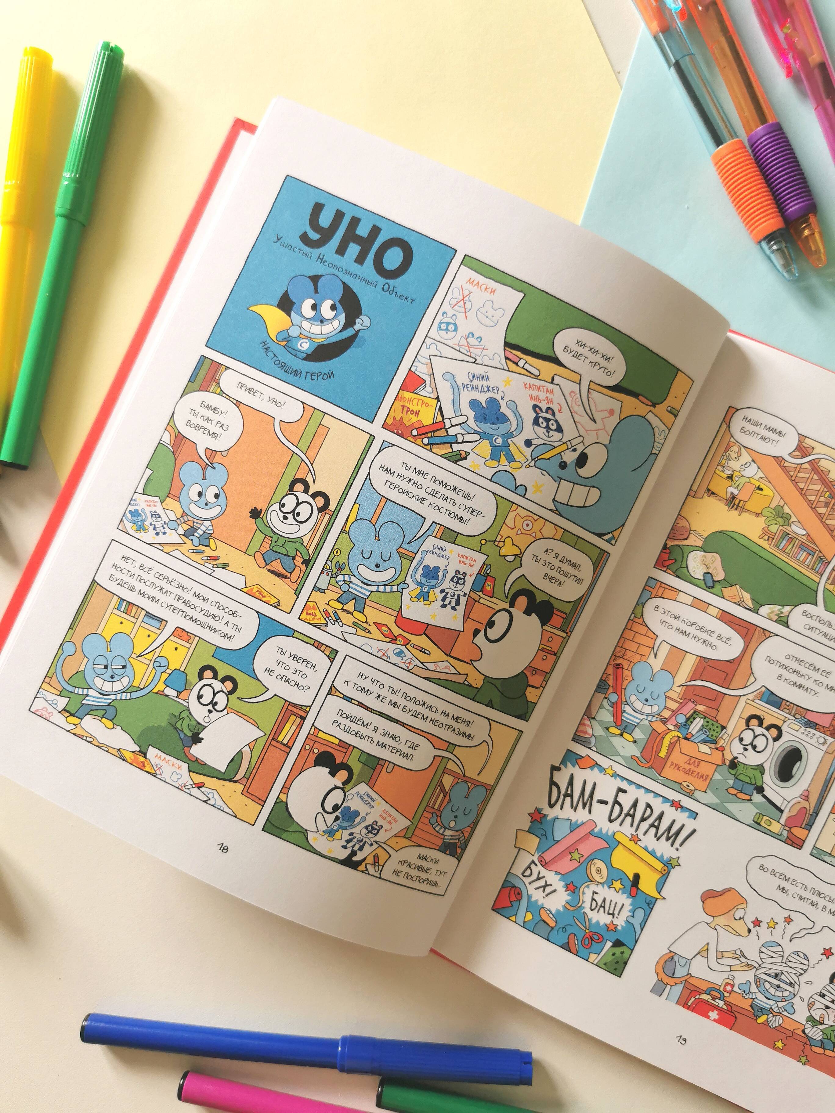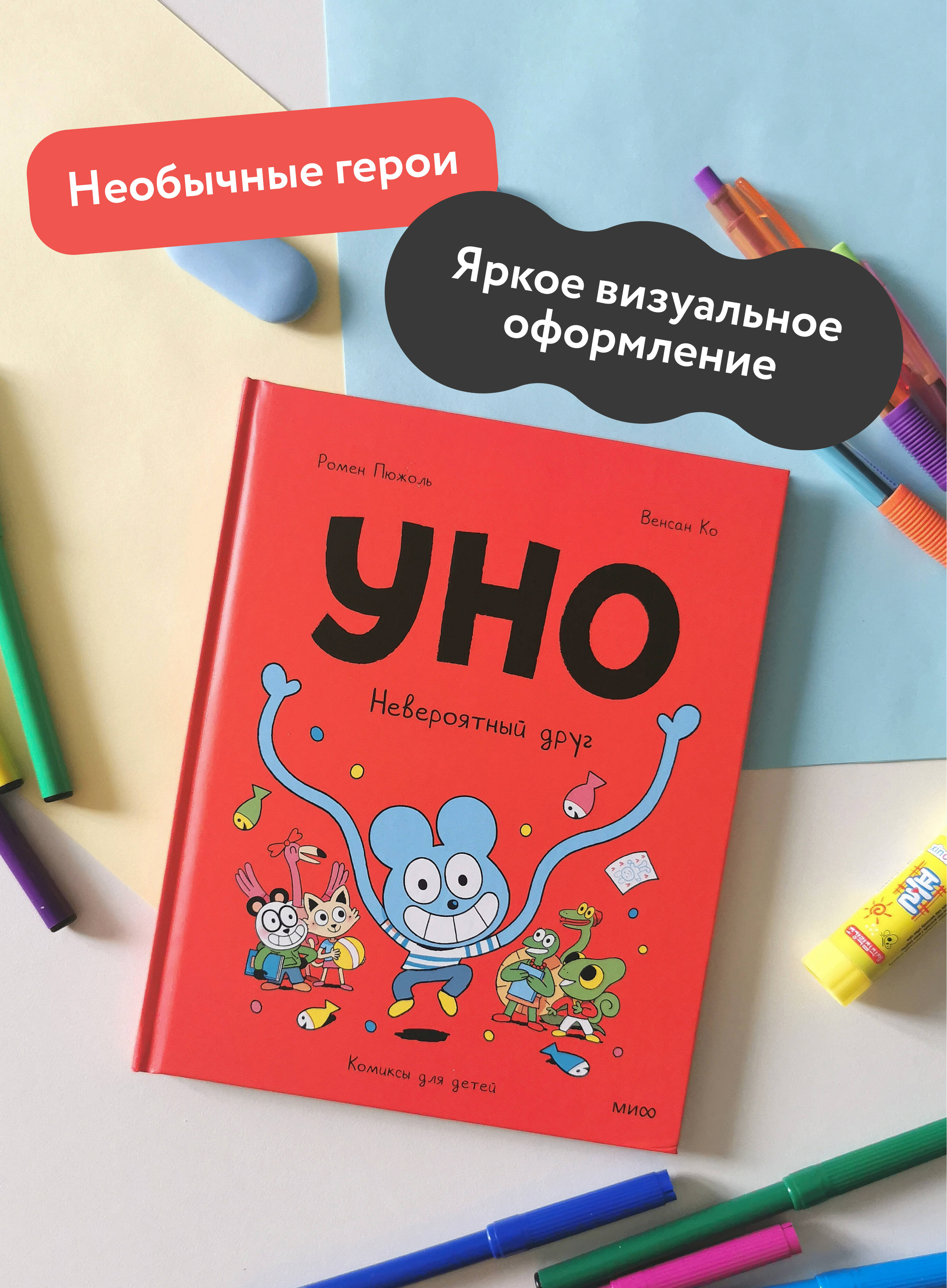 Уно - самый необычный ученик в школе. Во-первых, никто не знает, что он за зверь. Во-вторых, у него уйма невероятных способностей: он может удлинять руки и ноги (а еще зубы), становиться невидимым, менять цвет и даже отращивать жабры. Все одноклассники, конечно, в восторге от невероятного друга и его забавных проделок! Однажды Уно решает использовать свои потрясающие умения не только ради веселья, но и чтобы творить добро и защищать слабых. И становится... настоящим супергероем! Что же ждет блистательного Синего Рейнджера? Ведь между подвигами нужно еще успевать как-то учиться... Фишки книги: - Емкий ситуативный юмор, понятный в любом возрасте. - Отличное визуальное оформление: хорошо проработаны детали, выражения лиц героев, эмоции очень живые и понятные без слов. - Яркие и необычные герои, которые будут близки детям. - Короткие рассказы идеально подойдут для начинающих читателей: перед сном можно прочитать 2-3 истории и спокойно засыпать. - Знакомство с серией можно начать с любого тома. - Поможет ребенку начать читать самостоятельно. Для кого эта книга: Для детей от 5 лет и их родителей. Для поклонников серии "Эмиль и Марго". Для всей семьи, если вы любите читать и веселиться вместе. Для всех любителей комиксов.