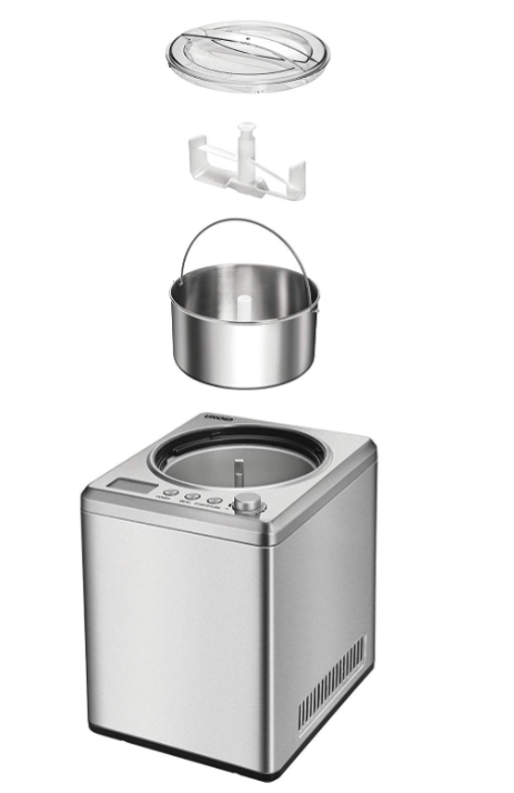 Эта мороженица относится к компрессорному типу, то есть она использует встроенный компрессор для замораживания смеси, устраняя необходимость в предварительном замораживании чаши. Эта функция позволяет спонтанно и быстро готовить мороженое.