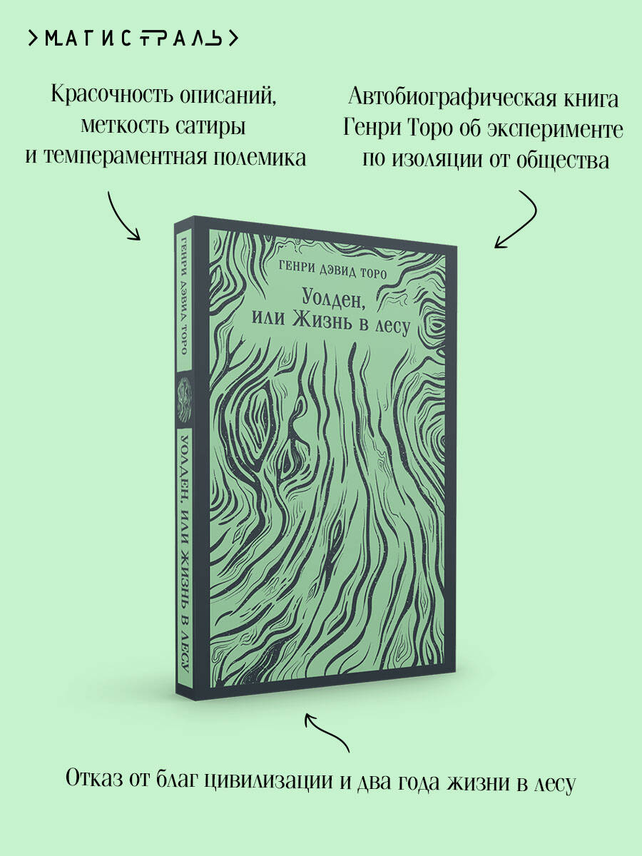 Два года, два месяца и два дня провел Генри Торо в хижине на берегу Уолденского пруда, в добровольной изоляции от общества, занимаясь земледелием, рыбалкой, чтением, отказавшись от ненужных ему изобретений современной цивилизации. Результатом затворничества стала книга «Уолден, или Жизнь в лесу» - 18 эссе-наблюдений о строительстве хижины, способах вести хозяйство, лесных жителях и природе. Красочность описаний, меткость сатиры и темпераментная полемика - все это часть личной декларации независимости, социального эксперимента, путешествия духовных открытий и - в некоторой степени - руководства по уверенности в себе. Автобиографическая книга Генри Торо, где он рассказывает об эксперименте, намного опередившем свою эпоху, стала американской классикой и оказала влияние на самые разные течения современной мысли, от анархо-капитализма до экосоциализма.| Издательство | ООО "Издательство "Эксмо" |