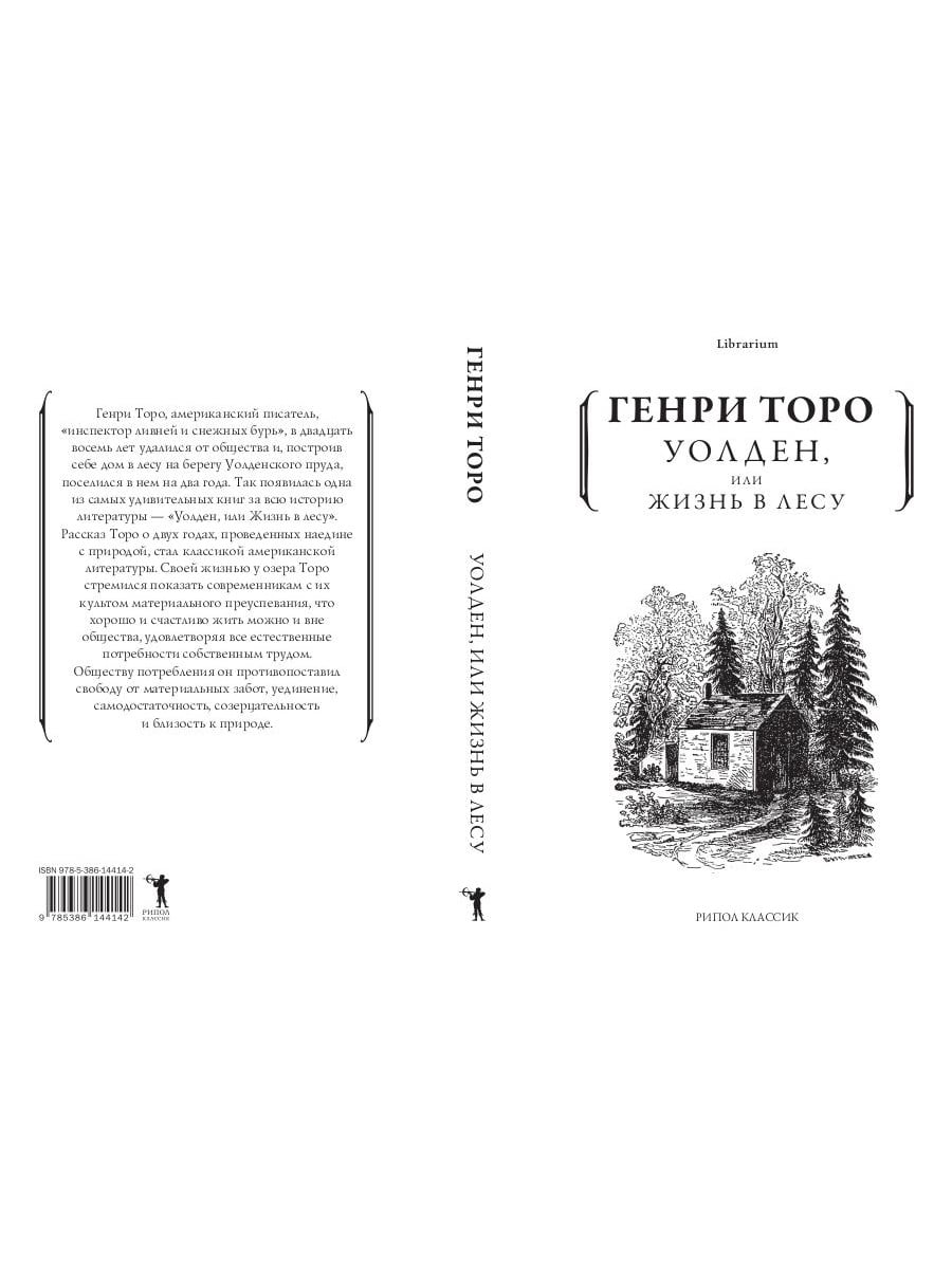 Генри Торо, американский писатель, «инспектор ливней и снежных бурь», в двадцать восемь лет удалился от общества и, построив себе дом в лесу на берегу Уолденского пруда, поселился в нем на два года. Так появилась одна из самых удивительных книг за всю историю литературы - «Уолден, или Жизнь в лесу». Рассказ Торо о двух годах, проведенных наедине с природой, стал классикой американской литературы. Своей жизнью у озера Торо стремился показать современникам с их культом материального преуспевания, что хорошо и счастливо жить можно и вне общества, удовлетворяя все естественные потребности собственным трудом, Обществу потребления он противопоставил свободу от материальных забот, уединение, самодостаточность, созерцательность и близость к природе.| Издательство | Рипол Классик |