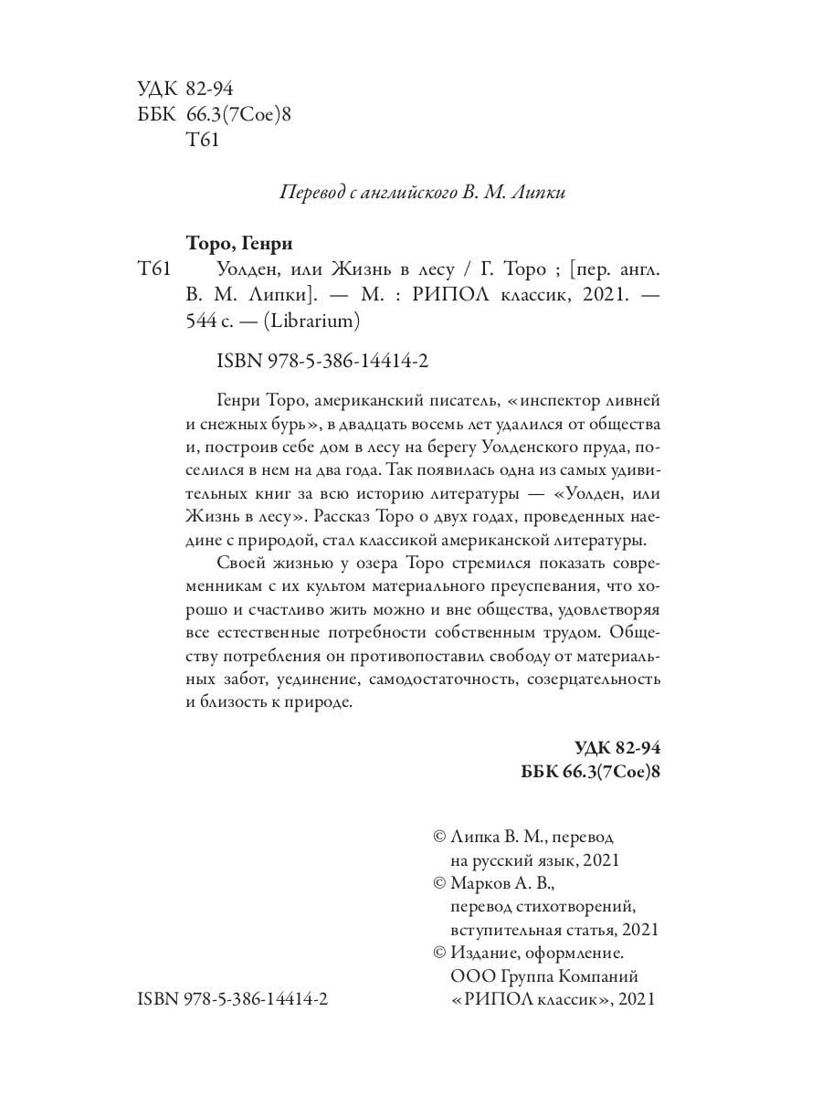 | Автор/составитель | Торо Генри Дэвид |