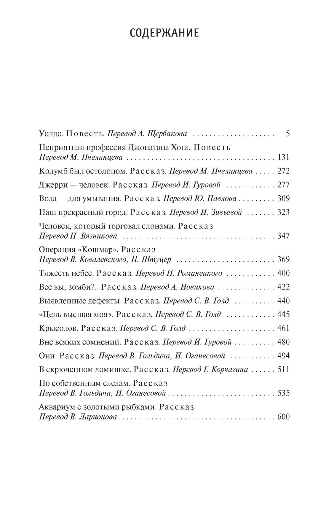 Повести и рассказы, вошедшие в этот том, разнятся по времени написания. Объединяет их человеческая составляющая, сильно оттеняющая задачи будущего научно-технического прогресса. «Уолдо» - повесть об одиноком гении, который, презрев человечество и став затворником на земной орбите, преодолевает чувство своей отверженности. «Неприятная профессия Джонатана Хога» - история об иллюзорности мира, который нас окружает. Или рассказ «Наш прекрасный город», повествующий о дружбе человека и странного существа, живущего на городских улицах. В книге есть рассказы о потерянной и возвращенной любви («Человек, который торговал слонами»). О доме, каждая дверь в котором ведет в места неожиданные («В скрюченном домишке»). О том, как вернуть себя, распавшегося на множество двойников («Все вы, зомби?..»). О том… В общем, о многом. И достоверном, и фантастическом. В настоящем издании перевод многих произведений доработан и дан в новой редакции.| Издательство | Азбука |