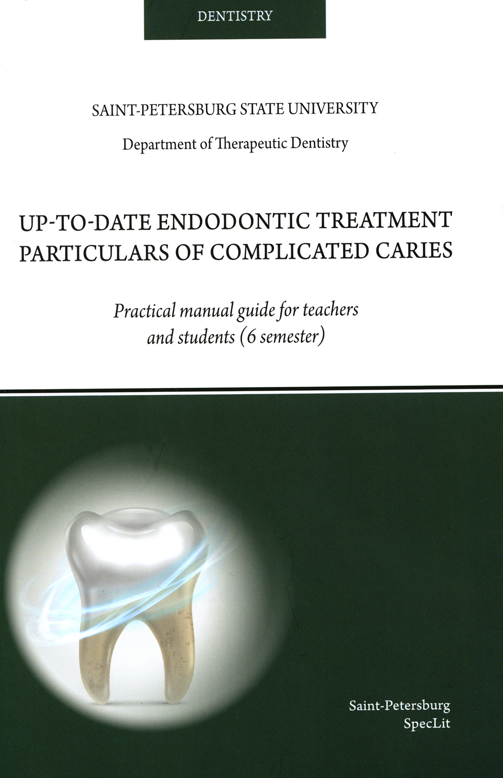 The practical methodology manual «Up-to-date endodontic treatment particulars of complicated caries» was elaborated by a team of authors from the Department of Therapeutic Dentistry of St. Petersburg State University and translated into English to enlarge the target group of students. The practical manual in question examines state-of-the art clinical approaches to the treatment of complicated caries, it is based on the latest findings of microbiology and anatomy specialized researches, conducted by both domestic and foreign scientists. Biological relevance underlies the approaches: it considers ensuring a working access, the choice of instruments and methods for high-quality root canal treatment and obturation, application details of dental irrigation solutions, errors and complications arising in the course of treatment. The Practical manual guide is intended for higher educational institution dentistry dept students and teachers, as well as for residents and graduate students.| Издательство | СпецЛит |