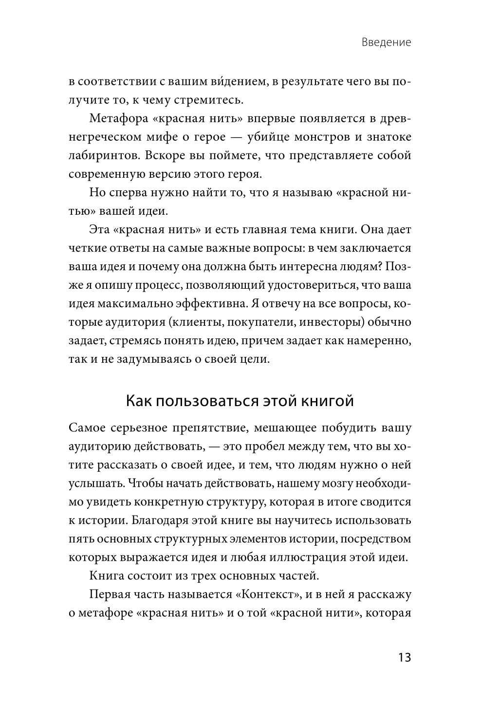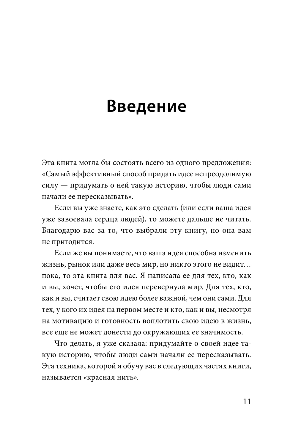 У вас есть отличная идея или полезный продукт, и вы хотели бы презентовать их так, чтобы показать уникальность и завоевать доверие. Попробуйте «метод красной нити». Кольцо с бриллиантом - традиционный символ любви и верности, а на самом деле - результат успешного маркетинга компании De Beers и удачного слогана: «Бриллианты - это навсегда». Самый эффективный способ донести до всех вашу идею - придумать историю, которую люди сами начнут пересказывать друг другу. Если вам нужно презентовать свою идею или создать правильное внутреннее и рыночное позиционирование продукта, используйте авторский метод «красной нити», созданный Тэмсен Вебстер. Всего за пять шагов вы: - создадите уникальную и при этом универсальную историю; - поможете клиентам осознать имеющуюся у них проблему и покажете, как ее решить с помощью ваших инструментов; - вдохновите клиентов действовать. Превратите свои идеи в захватывающие истории и получите лояльность клиентов!| Издательство | Манн, Иванов и Фербер |