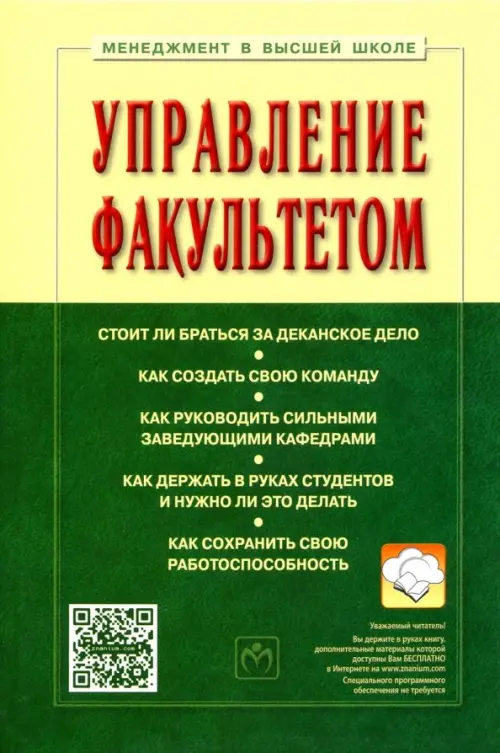 Впервые в России учебник посвящен деятельности деканского корпуса высших учебных заведений. Главы книги объединены в пять модулей: факультет и его руководитель в системе управления вузом, технологии управления факультетом, управление экономической и правовой деятельностью, управление инновационными образовательными программами, контроль и оценка деятельности факультета. Учебник предназначен деканам и их заместителям, методическим работникам деканатов, резерву на выдвижение, но также будет полезен всему управленческому персоналу высших учебных заведений.