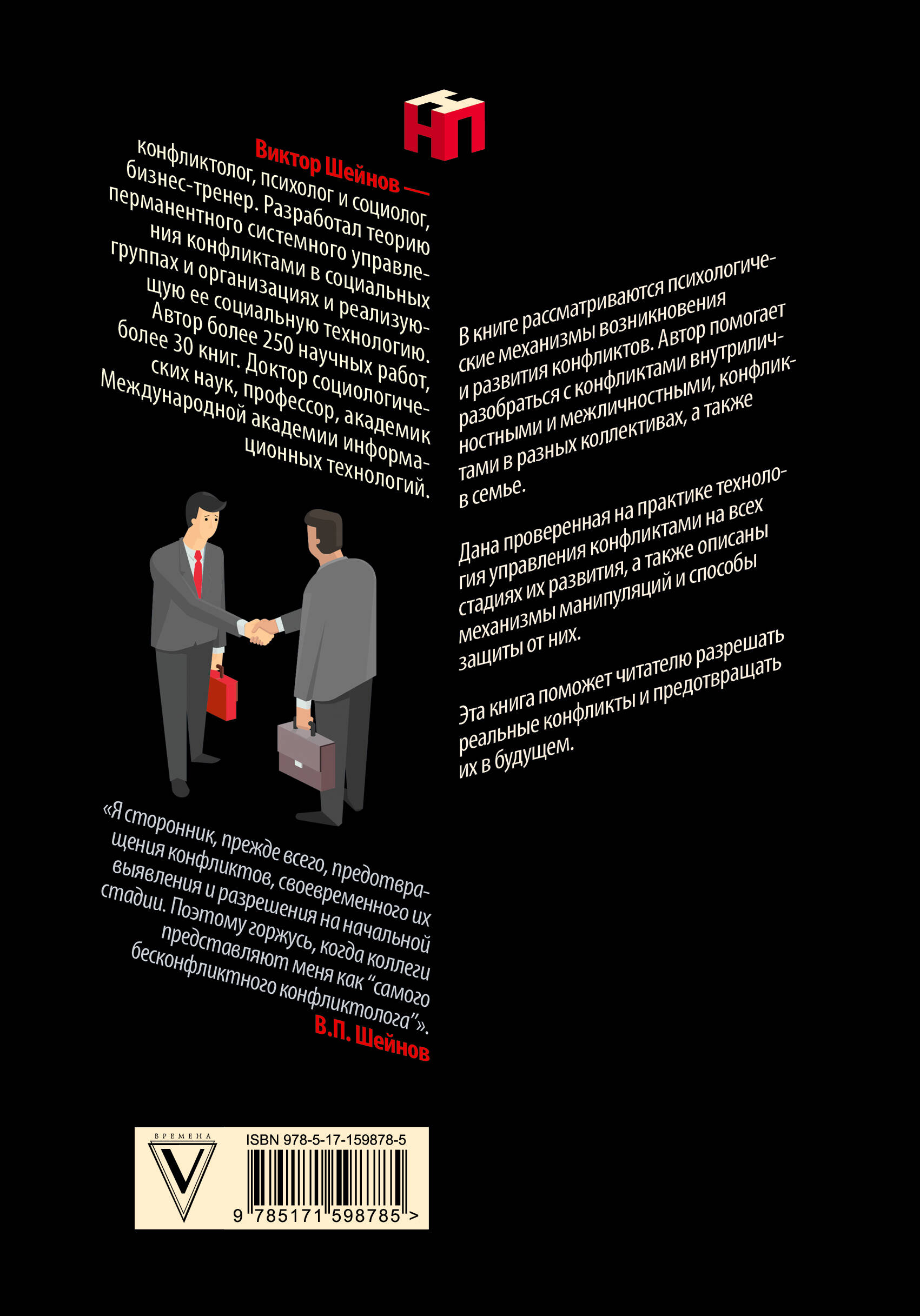 Виктор Шейнов - конфликтолог, психолог и социолог, бизнес-тренер. Разработал теорию перманентного системного управления конфликтами в социальных группах и организациях и реализующую ее социальную технологию. Автор более 250 научных работ, более 30 книг. Доктор социологических наук, профессор, академик Международной академии информационных технологий. Каждый из нас периодически в жизни сталкивается с конфликтами на работе или в семейной жизни, и иногда с собой. В книге "Управление конфликтами" рассматриваются психологические механизмы возникновения и развития конфликтов. Автор помогает разобраться с конфликтами внутриличностными и межличностными, конфликтами в разных коллективах, а также в семье. Дана проверенная на практике технология управления конфликтами на всех стадиях их развития, а также описаны механизмы манипуляций и способы защиты от них. Эта книга поможет читателю разрешать реальные конфликты и предотвращать их в будущем.| Издательство | Издательство "АСТ" |
