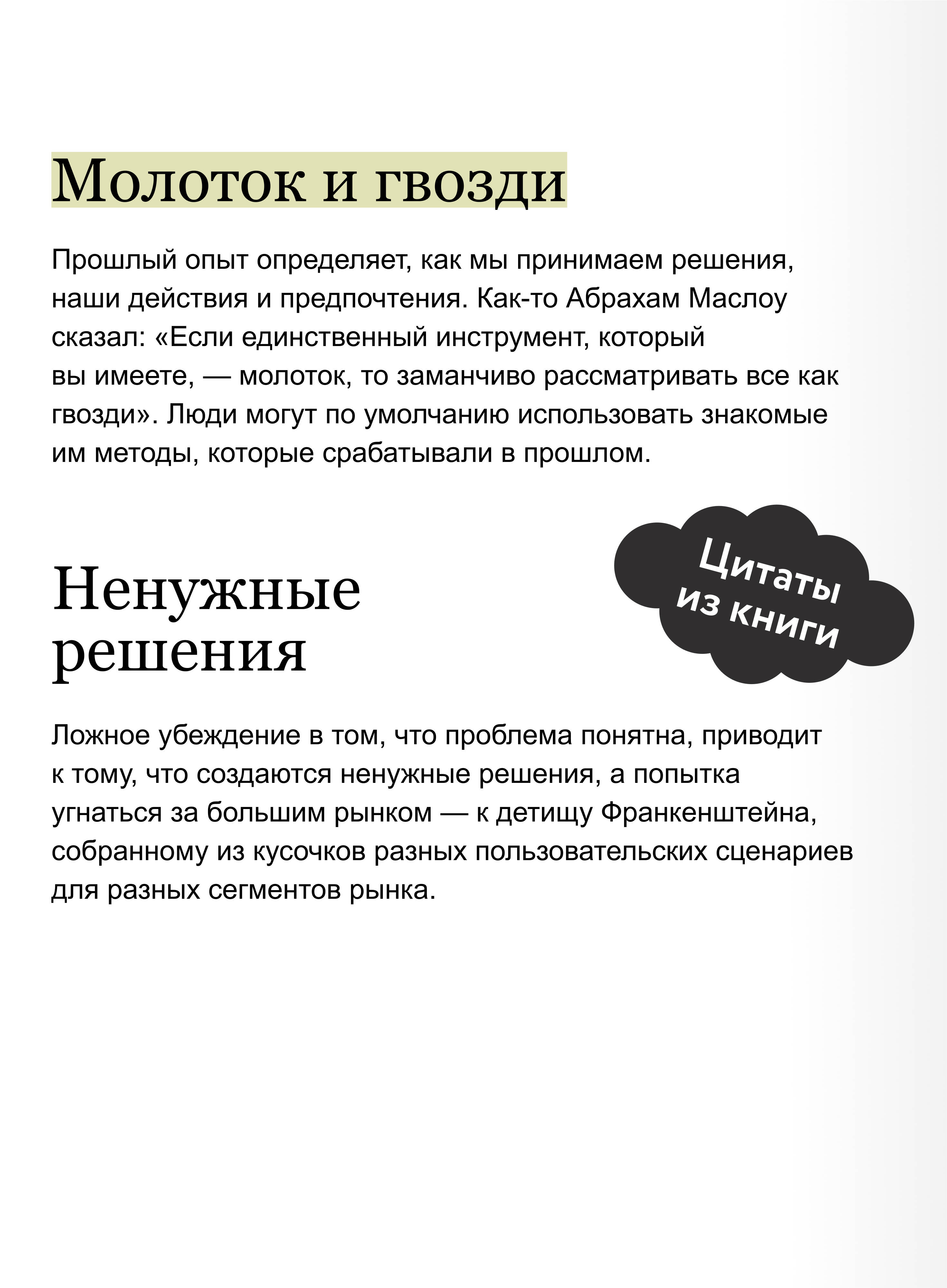 Книга о стратегическом и продуктовом менеджменте: как создавать стратегию,разрабатывать и продвигать продукт, улучшать бизнес-процессы и работу команды,использовать метрики и стимулировать рост. Разбор реальных бизнес-кейсов рос-сийских компаний, рекомендации, основанные на экспертизе и многолетнем опытеавтора.| Издательство | МИФ ООО |