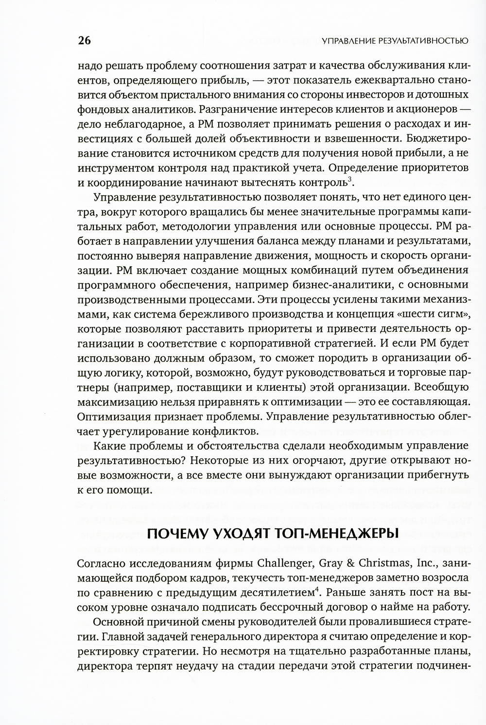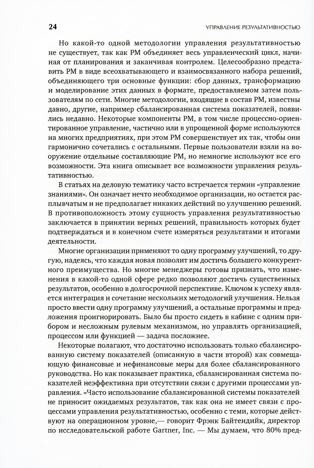Управление результативностью - это процесс управления стратегией организации при помощи полностью интегрированной системы методологий улучшения бизнеса. Управление результативностью включает методологии, измерение, процессы, программные средства и системы управления деятельностью организации. Признанный эксперт современных систем управления стоимостью и повышения результативности Гэри Кокинз в своей книге показывает, как корпорации могут использовать инструменты управления результативностью, и существующие издавна, и созданные в последние годы. Сбалансированная система показателей, концепция «шесть сигм» и процессно-ориентированное управление позволяют собирать данные, преобразовывать и трансформировать их в информацию, полезную при принятии решений.| Издательство | Альпина ПРО |
