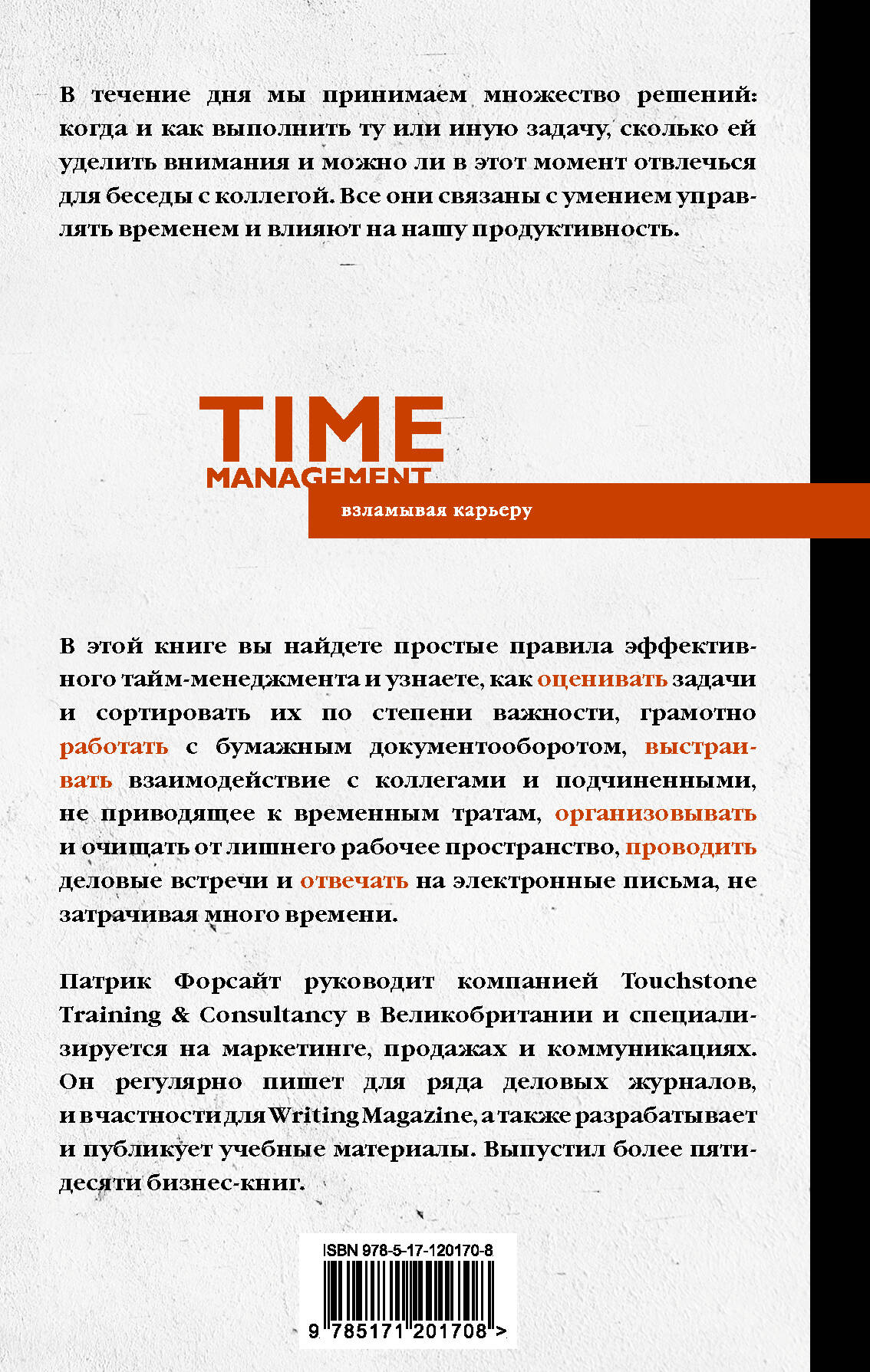 Патрик Форсайт раскрывает главные секреты эффективного тайм-менеджмента. • Как планировать и организовывать работу? • Что говорить коллегам и подчиненным, чтобы избежать пустых разговоров? Как избавиться от кучи бумаг на столе? • Когда и где проводить деловые встречи и как отвечать на письма, чтобы экономить время? Ответы на вопросы вы найдете в новинке от ведущего специалиста по маркетингу и коммуникациям.| Издательство | АСТ |