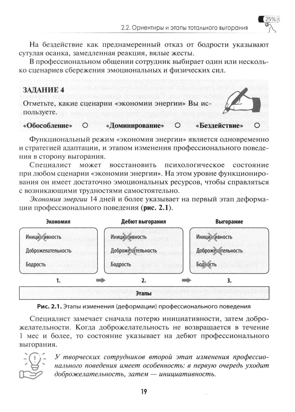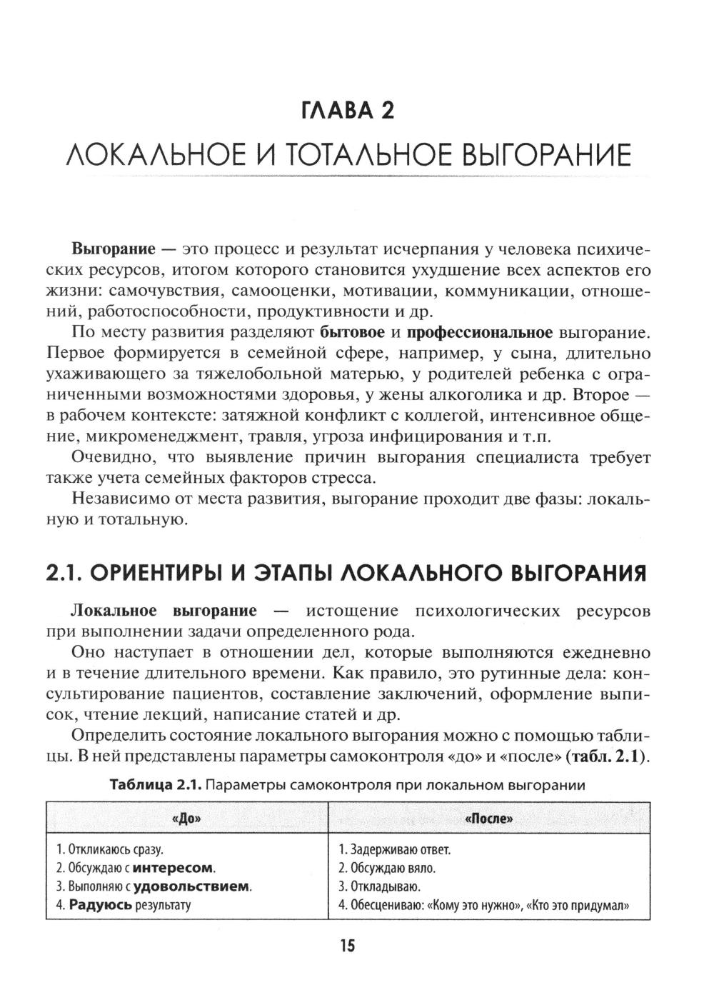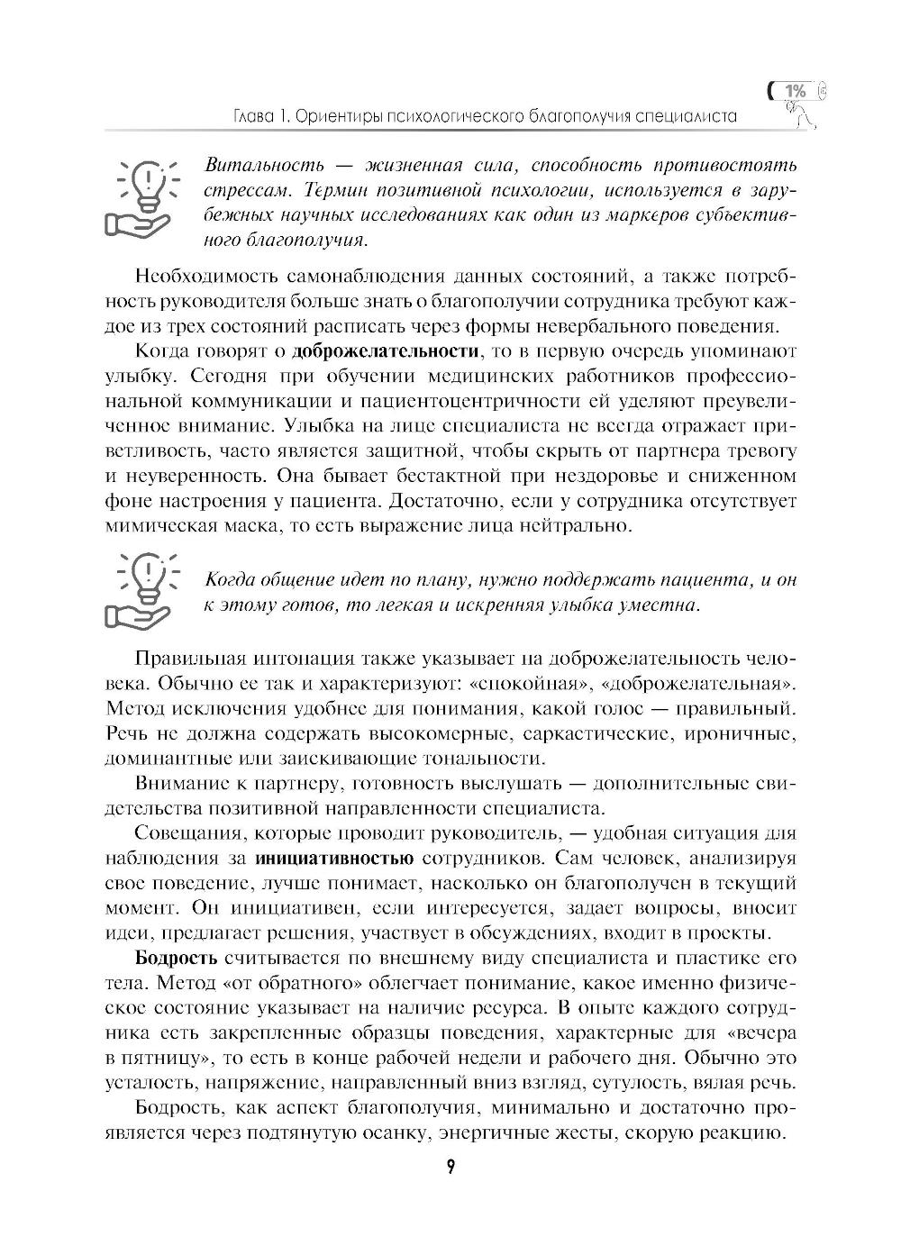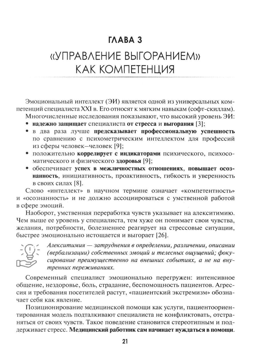 Руководство освещает передовой опыт сохранения психического здоровья специалистов сферы здравоохранения. Предлагает специалистам медикам и их руководителям инструменты для индивидуального и корпоративного благополучия. Содержит краткую теорию, как действовать в конфликтных и кризисных ситуациях. Тренажерные задания и упражнения, разбор рабочих ситуаций помогают оценить свои действия и совершенствовать навыки управления выгоранием, что в конечном итоге служит улучшению взаимодействия в системе «медработник-пациент». Подход к управлению выгоранием открывает широкие возможности для профессиональной реализации, своевременного выявления и устранения деформации профессионального поведения. Руководство - итог 15-летнего труда автора по профилактике выгорания. Предназначено для медработников, руководителей и сотрудников отдела по управлению персоналом, а также других специалистов, интересующихся задачей создания позитивного настроя и благоприятной среды на рабочем месте.| Издательство | ГЭОТАР-Медиа |