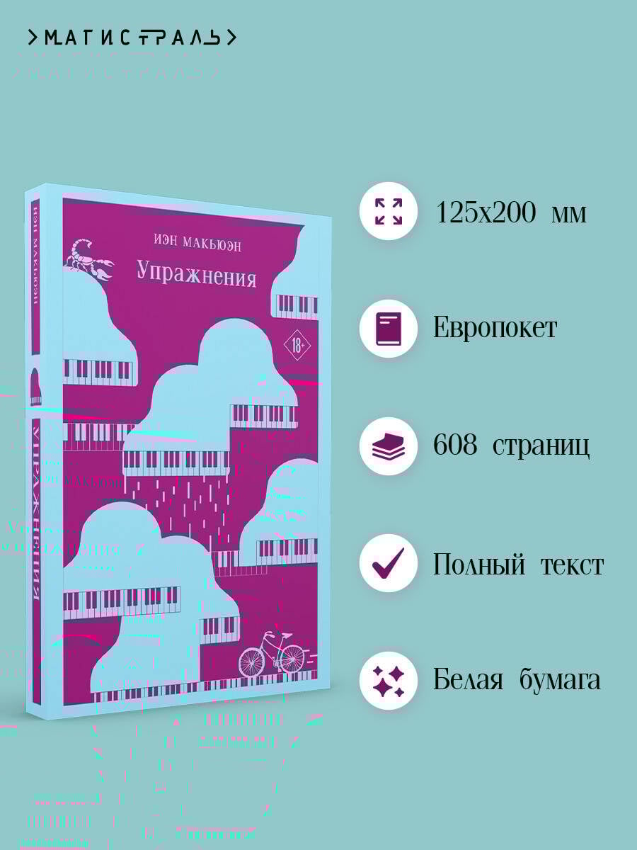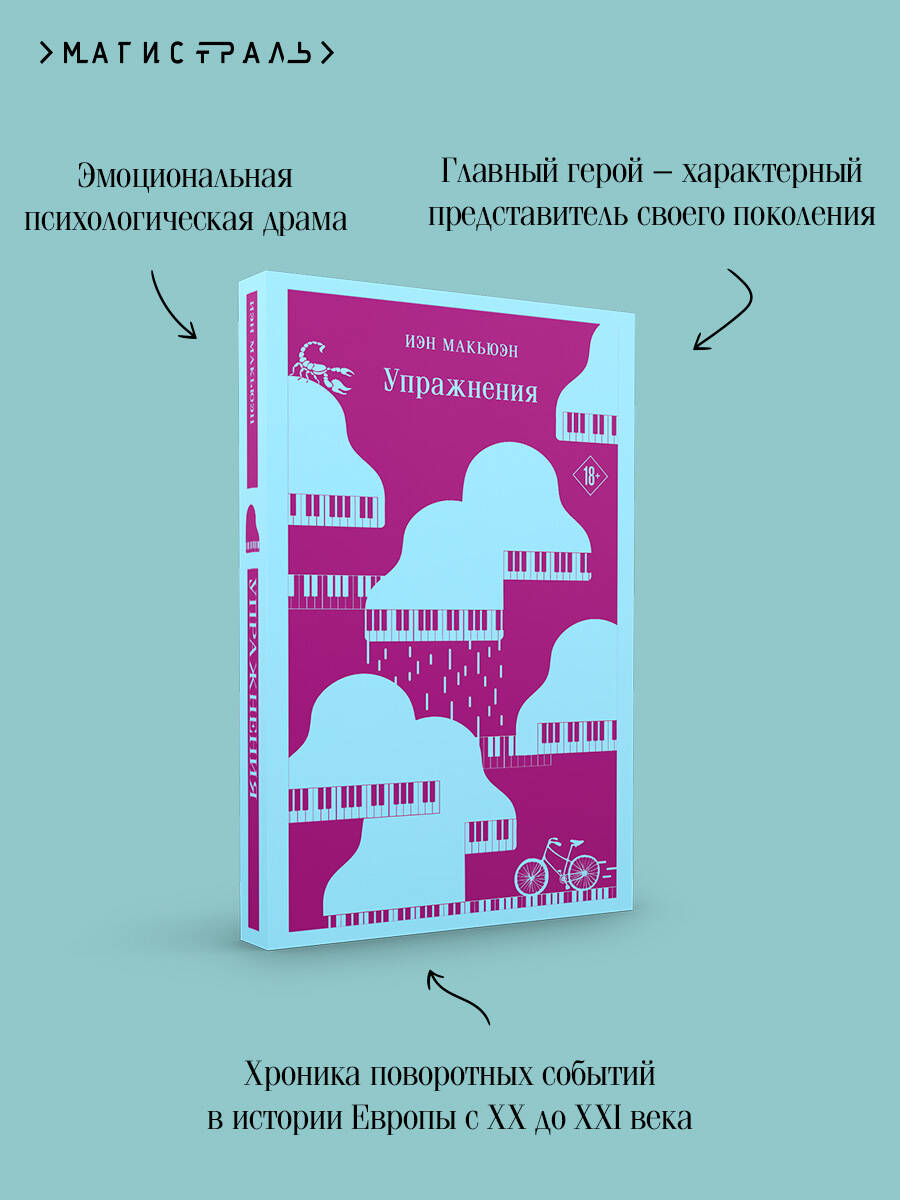 «Упражнения» - эмоциональная психологическая драма для неспешного чтения с элементами биографии самого автора. В середине ХХ века, когда мир еще подсчитывает цену Второй мировой, жизнь одиннадцатилетнего Роланда Бейнса переворачивается с ног на голову. Отец-военный увозит его из Ливии и определяет в английскую школу-интернат, где его уязвимость привлекает молодую учительницу фортепиано, Мириам Корнелл. Иррациональная и трагичная первая любовь красной нитью пройдет через всю жизнь мальчика. Много позже, когда жена Роланда исчезнет, оставив его одного с маленьким сыном, он будет искать ответы и в своей юности, и в истории своей семьи. Иэн Макьюэн описывает хронику поворотных событий в истории Европы с XX до XXI века через призму жизни Роланда, характерного представителя своего поколения. «Когда читаешь этот многоплановый и многособытийный роман Иэна Макьюэна, невольно вспоминаешь иронический каламбур названия другого романа - "Искусство кройки и житья" Булата Окуджавы. Здесь тоже есть тонкая грань каламбура: Lessons - так просто называется книга по-английски. Но это простое, на первый взгляд, название включает множество смыслов, балансируя между уроками игры на пианино, которые берет в детстве герой, и уроками "житья", когда музыкальные упражнения почти незаметно превращаются для него в упражнения игры на фортепьяно, взаимоотношений с людьми, политической активности, короче говоря, в упражнения жизни. На этих поприщах герой терпит одну неудачу за другой: он не стал ни выдающимся пианистом, ни видным политическим деятелем, ни благополучным главой семейства. Причина его жизни-неудачи - эгоизм, помноженный на нерешительность и страх перед вызовами жизни, не раз требовавшими от него решительности и недвусмысленности решений и поступков. А таких упражнений ему никто не предлагал...» - Олег Алякринский, переводчик| Издательство | ООО "Издательство "Эксмо" |