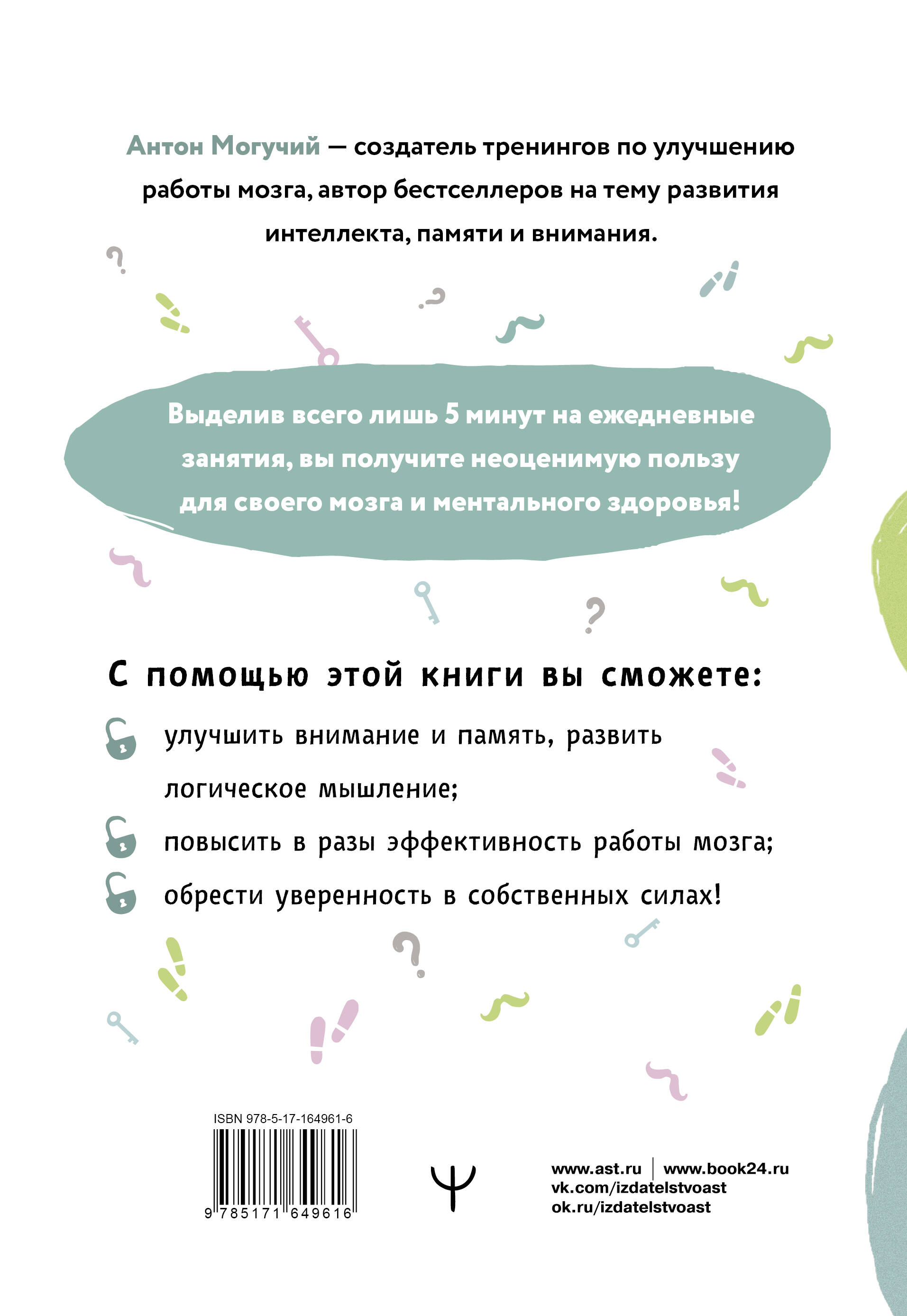 Рабочая тетрадь с упражнениями для мозга по методикам спецслужб поможет всем, кто хочет улучшить память, повысить концентрацию внимания, развить аналитическое мышление, а также устойчивость к стрессу. Методика интеллектуальной подготовки и мнемонические техники, которые используют сотрудники спецслужб, засекречены, но отдельные приемы все же доступны для широкой аудитории. Новая рабочая тетрадь Антона Могучего содержит уникальные упражнения для развития интеллекта, основанные на методиках подготовки сотрудников спецслужб. Регулярно выполняя задания из этой книги, вы сможете быстро и эффективно улучшить работу мозга, научитесь оперативно решать любые задачи, сможете быстро усваивать новые знания и лучше разбираться в людях, событиях и явлениях. И что немаловажно - обретете уверенность в собственных силах! Даже если вам кажется, что ум и память настоящего разведчика вам не нужны, не спешите откладывать этот тренажер. Тренировки мозга помогут вам сохранить отличную память и завидную сообразительность на долгие годы. С помощью этой книги вы сможете: · улучшить внимание и память, развить логическое мышление; · повысить в разы эффективность работы мозга; · обрести уверенность в собственных силах! Всего пять минут занятий в день - и вы сможете выйти на новый интеллектуальный уровень! Книга в мягкой обложке. Плотная бумага - выполнять задания можно прямо в книге.