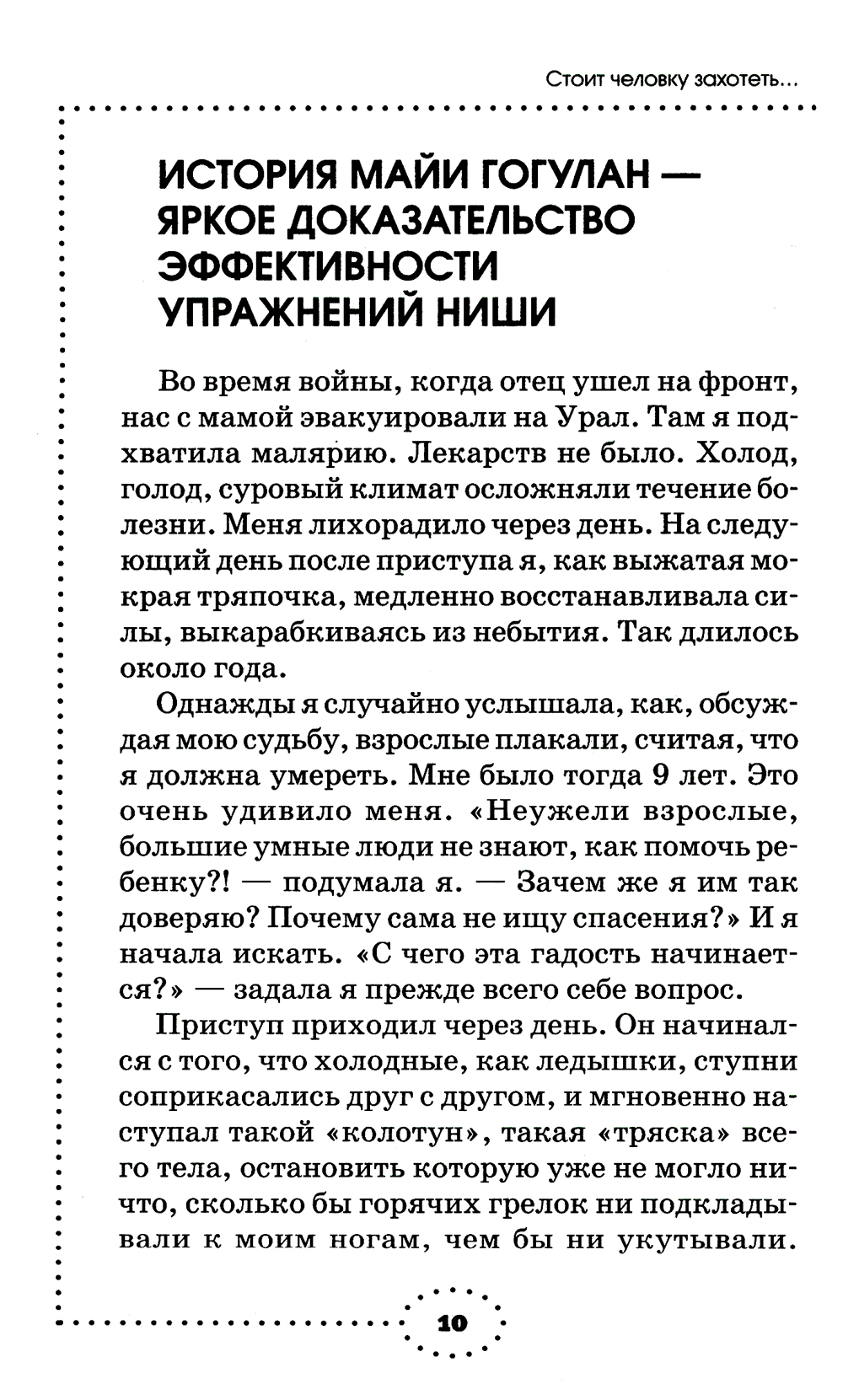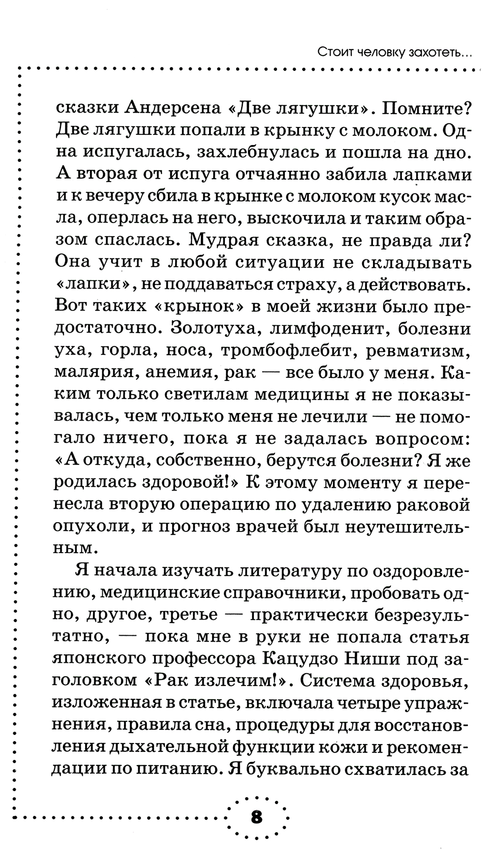 Почему человек болеет? Потому что нарушено кровообращение. Органы не получают питание, вредные вещества и шлаки вовремя не выводятся. Так считает журналист, писатель, мужественная женщина - Майя Гогулан. В этой книге она рассказывает о пяти упражнениях, которые очень быстро восстанавливают кровообращение и очищают организм. Именно эти пять упражнений помогли ей подняться с больничной койки, спасли тогда, когда врачи разводили руками. Пять упражнений доступны и молодым, и пожилым, и здоровым, и даже серьезно больным людям. В книге собран материал из лекций, статей, семинаров и интервью Майи Федоровны. Это ее рассказ о себе, о пяти упражнениях, их выполнении, ответы на наиболее часто задаваемые вопросы и бесценный личный опыт автора.| Издательство | Русский шахматный дом |
