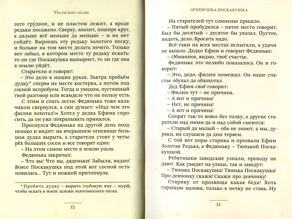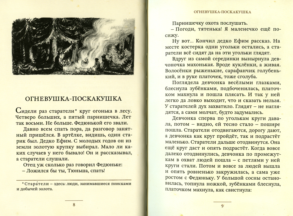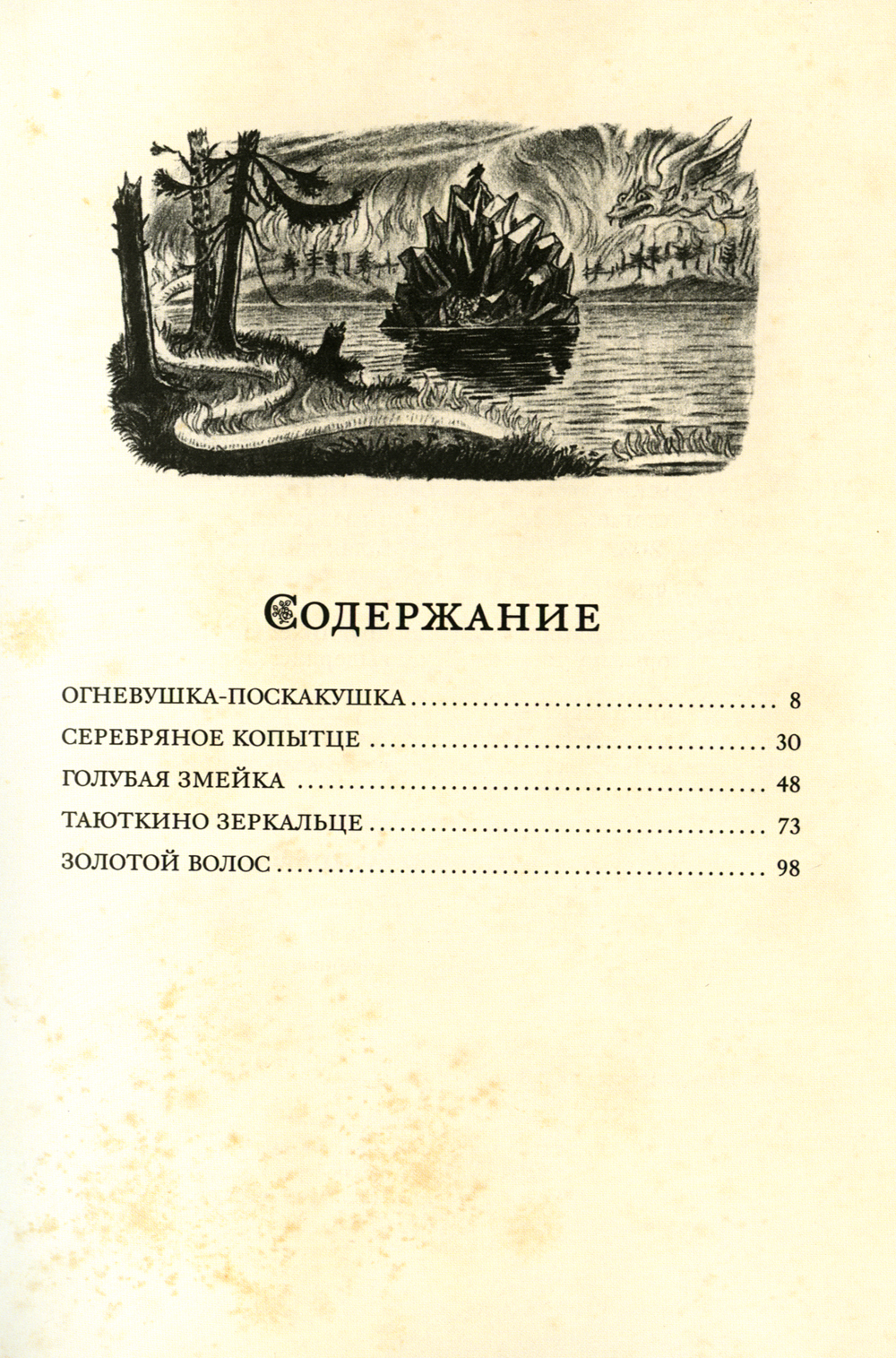 Что ожидает горнорабочего в руднике? Не угадать нрава Хозяйки горы, но чистое сердце выдержит испытания древней силы. Предания старателей слышны у костра, разведённого после тяжёлого рабочего дня. И водят вокруг того костра свой хоровод Огневушка-Поскакушка, Серебряное Копытце, голубая змейка и другие герои уральских сказов.