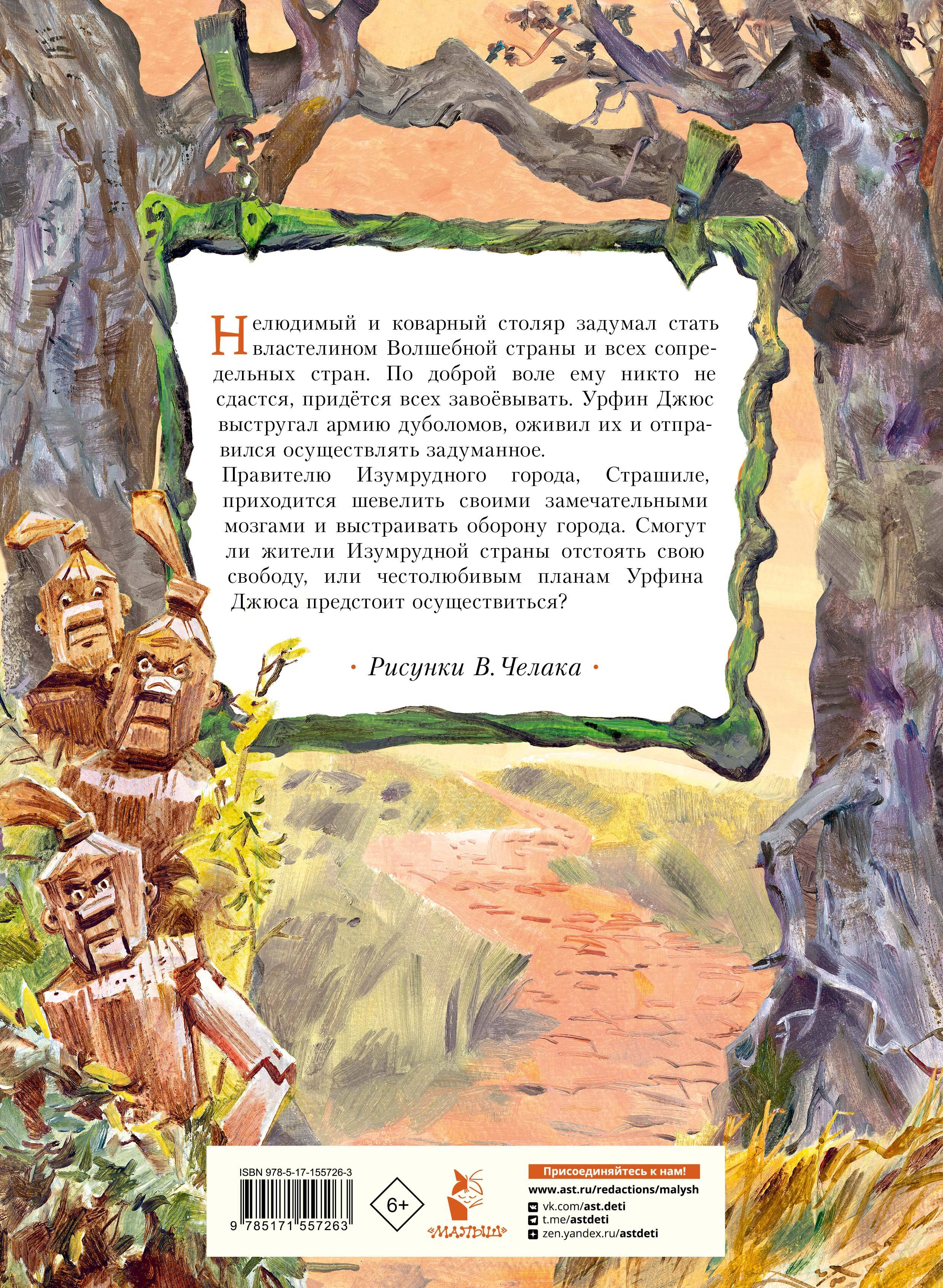 Нелюдимый и коварный столяр задумал стать властелином Волшебной страны и всех сопредельных стран. По доброй воле ему никто не сдастся, придётся всех завоёвывать. Урфин Джюс выстругал армию дуболомов, оживил их и отправился осуществлять задуманное. Правителю Изумрудного города, Страшиле, приходится шевелить своими замечательными мозгами и выстраивать оборону города. Смогут ли жители Изумрудной страны отстоять свою свободу, или честолюбивым планам Урфина Джюса предстоит осуществиться?| Издательство | Издательство "АСТ" |