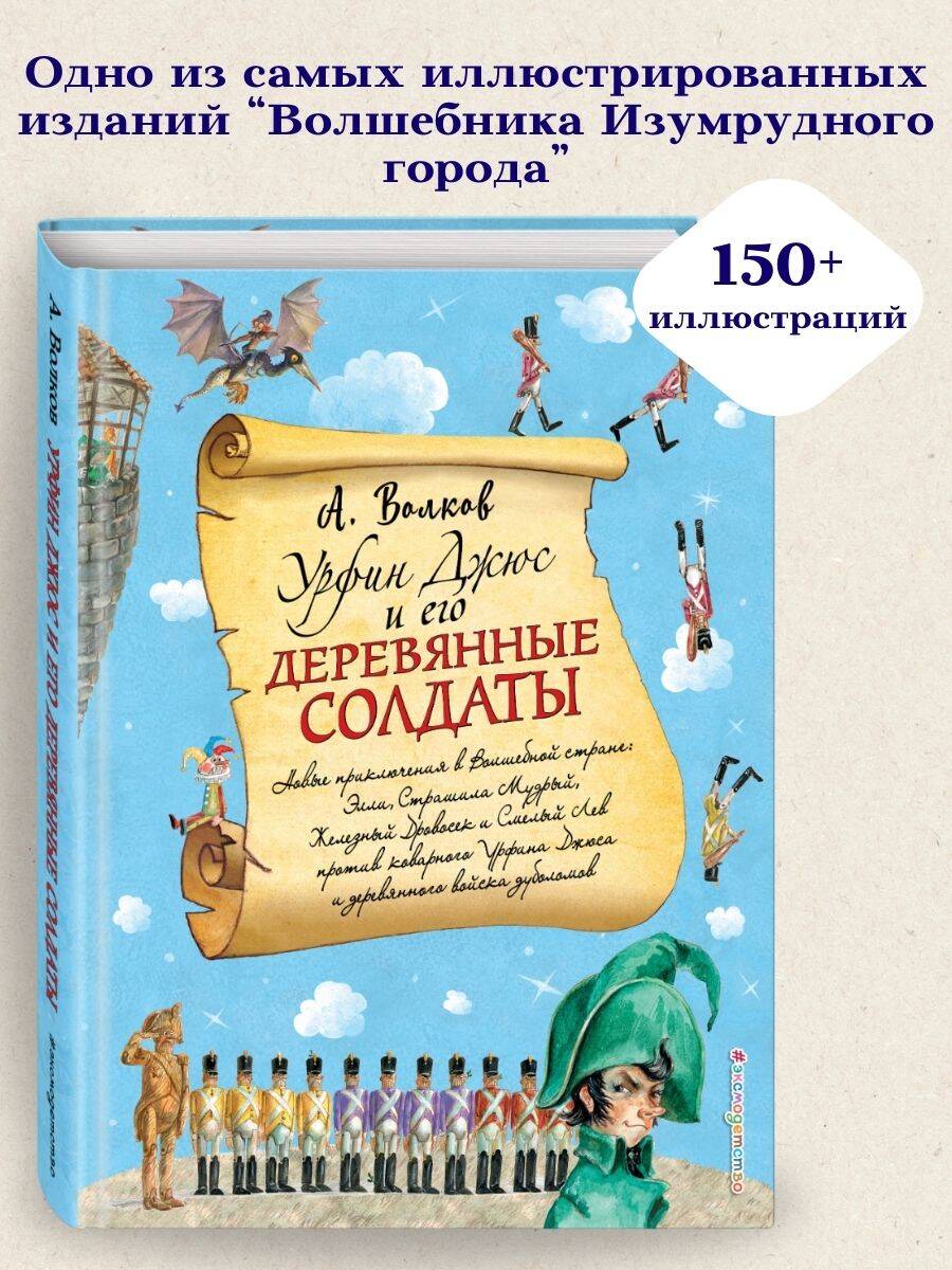 Бывший помощник колдуньи столяр Урфин Джюс создает целую армию деревянных солдат и мечтает захватить Изумрудный город. Жители Волшебной страны зовут на помощь девочку Элли, которая когда-то уничтожила злую колдунью. Элли и её дядюшка Чарли отправляются в Волшебную страну, чтобы спасти друзей, которые попали в плен к злобному Урфину Джюсу… Приключения в Волшебной стране продолжаются. Удивительные и подробные рисунки ко второй книге эпопеи А. Волкова создала современная художница Анна Власова. На сегодняшний день это самое иллюстрированное издание сказочного цикла.| Издательство | ООО "Издательство "Эксмо" |