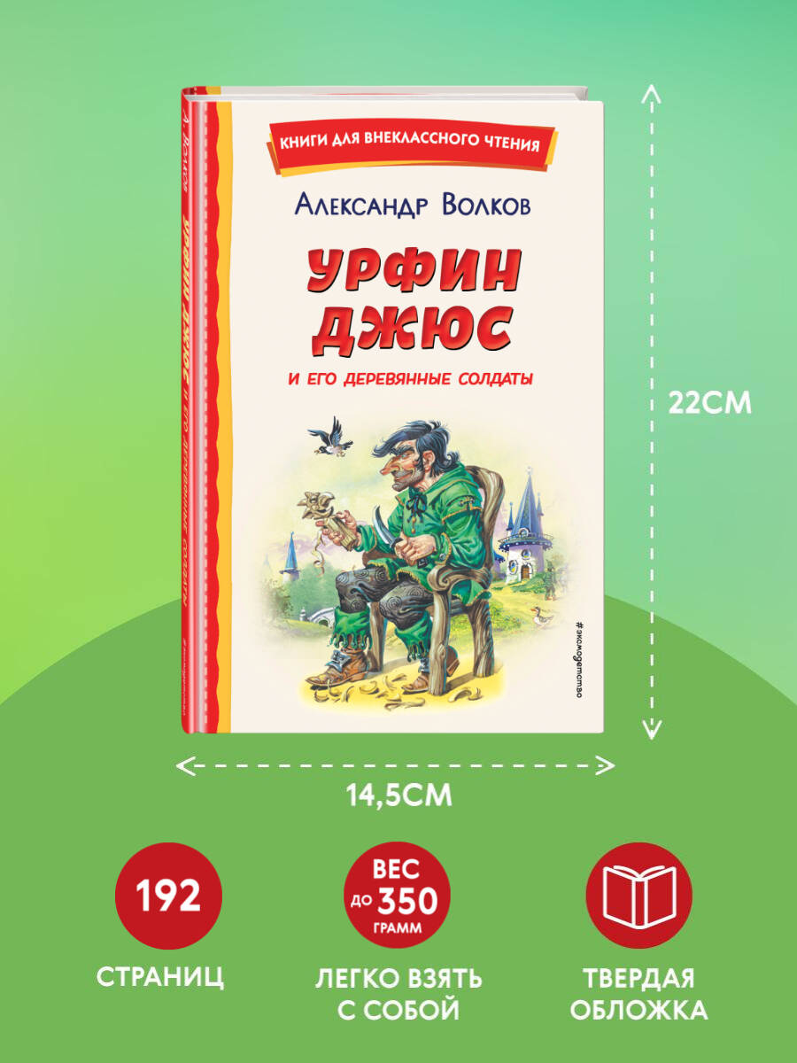 Серия «Книги для внеклассного чтения» - это подборка главных произведений русских и зарубежных авторов, входящих в школьную программу. «Урфин Джюс и его деревянные солдаты» - это вторая книга сказочной эпопеи «Волшебник Изумрудного города». Страшиле и Железному Дровосеку снова нужна помощь смелой девочки из Канзаса - Элли, ведь деревянная армия Урфина Джюса захватила Изумрудный город. Приключения Элли, Тотошки и их друзей продолжаются! В книгах Александра Волкова много волшебства, приключений и настоящей дружбы. Познакомьте ребёнка с его удивительным миром! Представленные в серии лучшие произведения детской литературы с цветными иллюстрациями помогут привить ребёнку любовь к чтению. Благодаря удобному формату и твёрдому переплёту книгу удобно носить с собой. Издание может быть использовано для чтения в школе и дома.| Издательство | ООО "Издательство "Эксмо" |