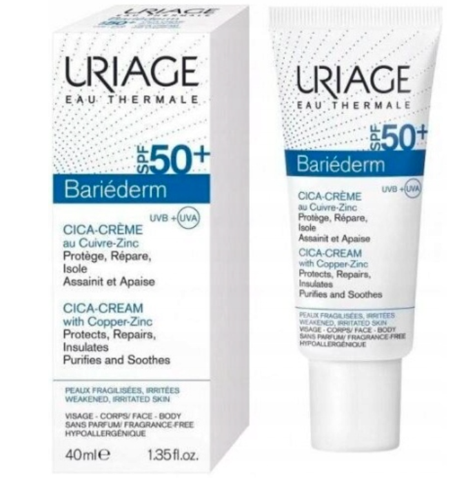 Uriage BARIÉDERM SPF50+ Крем для Лица - это высокоэффективный солнцезащитный уход для лица. Формула с термальной водой Uriage защищает кожу от UVA и UVB лучей, предотвращает фотостарение и обеспечивает интенсивное увлажнение.