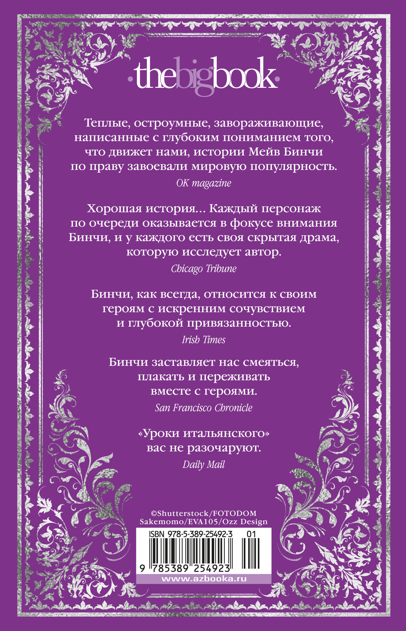 Ирландская писательница и журналистка Мейв Бинчи (1940-2012) хорошо известна не только на своей родине, но и во всем мире. Ее книги неизменно становились бестселлерами и не раз получали престижные международные премии. Настоящая слава пришла к ней после выхода первого романа "Зажги свечу" (1982). Роман "Уроки итальянского" написан с юмором и искренней любовью к героям. Необычная история о самых обычных людях. ...Она прожила на Сицилии много лет, прежде чем вернуться в родную Ирландию. И вскоре получила предложение вести вечерние курсы итальянского в дублинской школе. К слову, не слишком благополучной. Да и шансов на то, что затея с курсами увенчается успехом, почти не было. Не говоря уже о перспективе снова увидеть Италию... Но судьба распорядилась по-своему. Объявление о наборе на курсы итальянского языка вызвало неожиданный интерес, и на занятиях собралась довольно большая и пестрая группа. Этих людей, пожалуй, объединяло одно: стремление привнести в свою жизнь глоток свежего воздуха, которым и стала для них далекая Италия - теплая, щедрая, говорливая. Может быть, благодаря тому, что их учительница оставила там свое сердце...| Издательство | Азбука-Аттикус Издат.группа ООО |