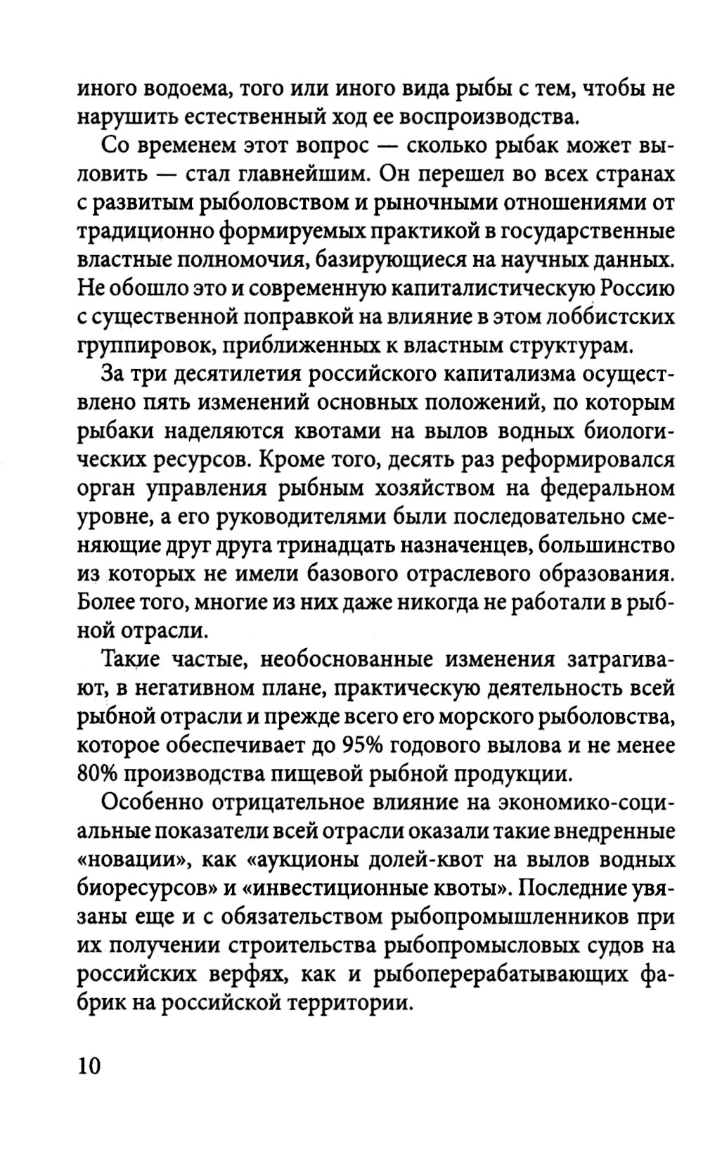 В книге рассматриваются произошедшие преобразования в рыбном хозяйстве с переходом от советского социалистического периода в СССР к капиталистическим, рыночным отношениям, которые стали основой социально-экономического развития России в последнее тридцатилетие. Анализируются количественные и качественные изменения важнейших показателей рыбной отрасли за этот период и их влияние на потребление рыбы, рыбопродукции населением страны. Предложены управленческие и организационные меры по преодолению выявленных негативных тенденций в функционировании рыбной отрасли страны в современных санкционных условиях и ее выходу на устойчивый путь развития. Книга предназначена для широкого круга специалистов федерального и регионального уровня в области управления рыбным хозяйством, предпринимателей рыбной отрасли, студентов, аспирантов, научного сообщества и заинтересованных читателей.