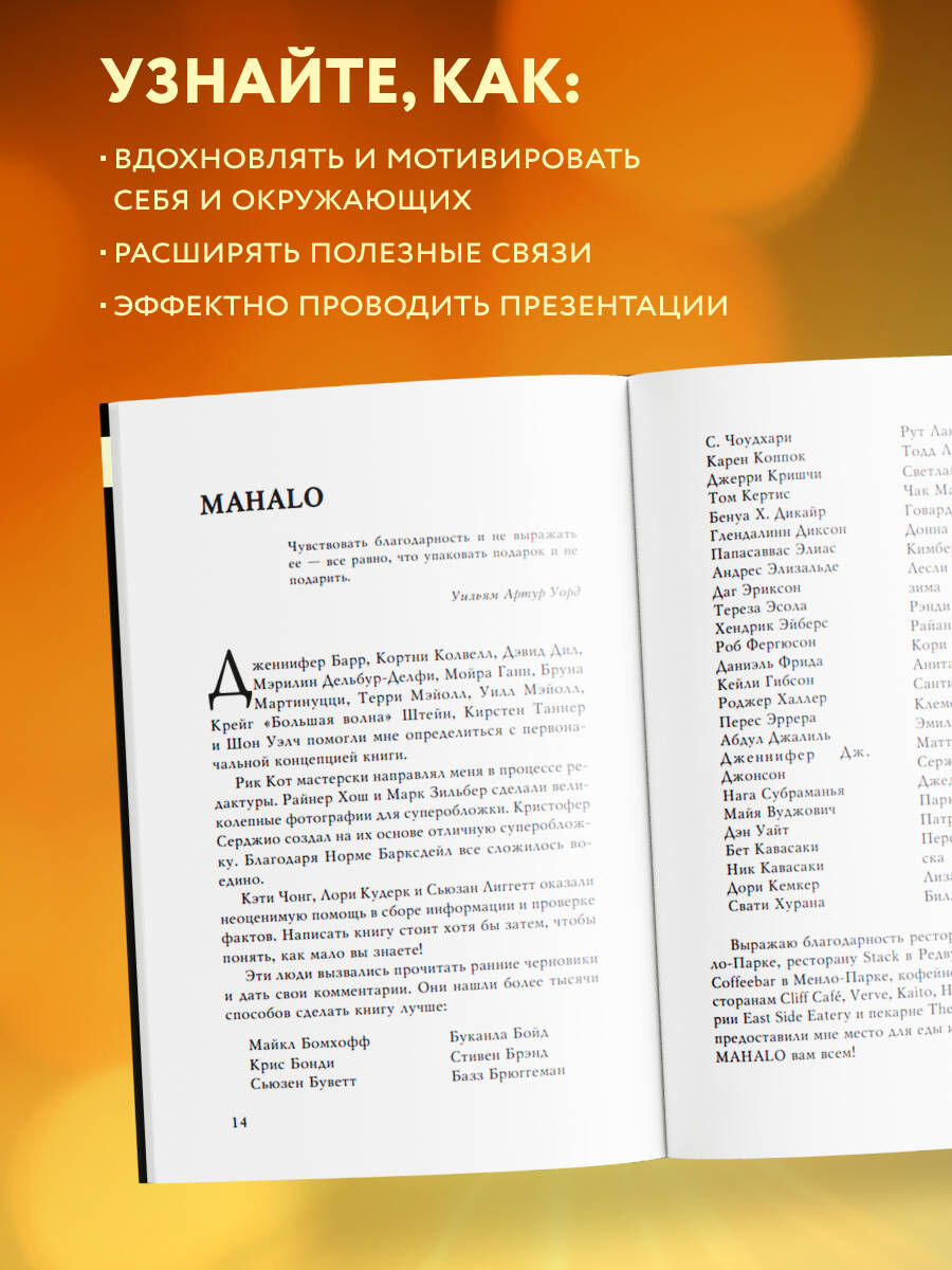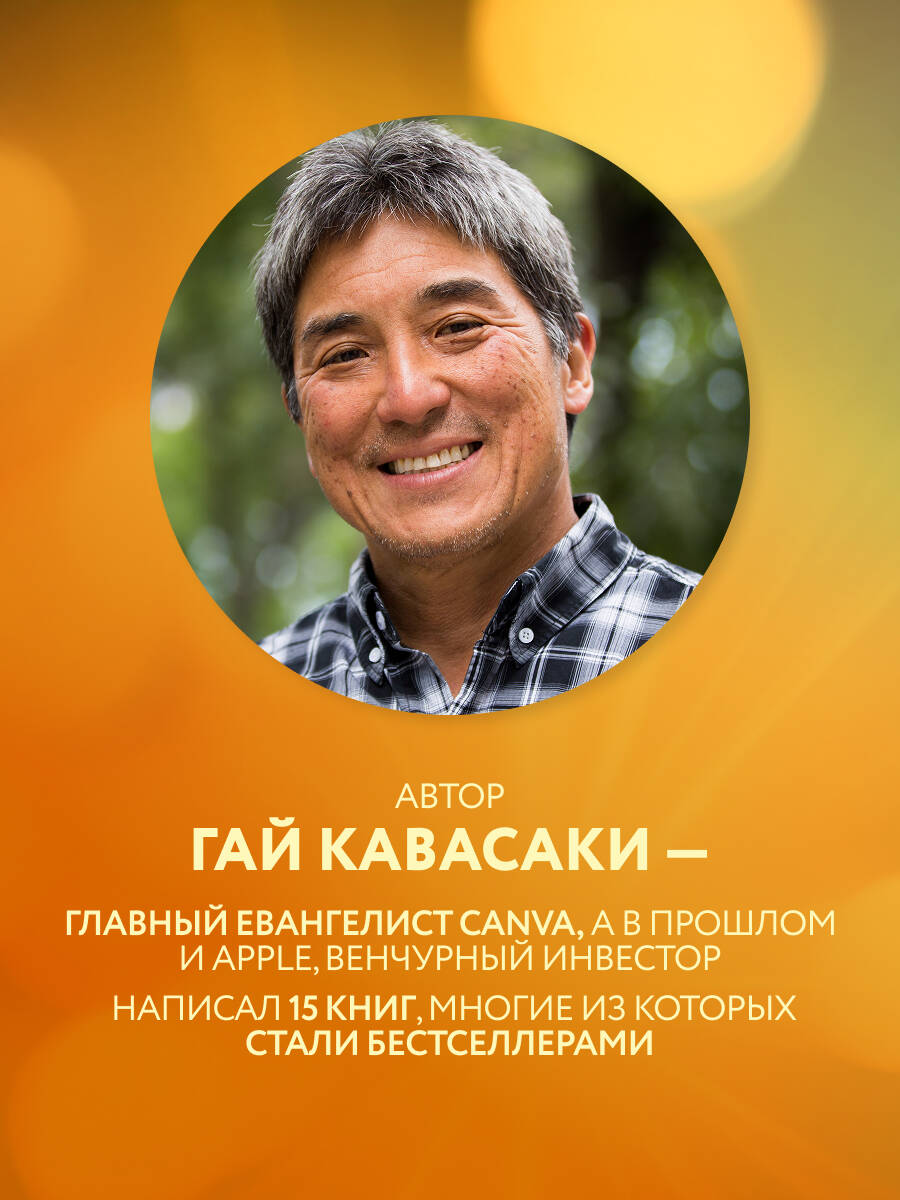 Однажды Стив Джобс дал совет: «Оставляйте вмятину во Вселенной». Гай Кавасаки тот человек, который не просто оставил вмятину, а продырявил Вселенную насквозь. Джобс не был впечатлен его кандидатурой при приеме на работу, тем не менее Кавасаки добился в Apple выдающихся результатов, заставив весь мир фанатеть от их продукции. Эта книга не является автобиографией, скорее это коллекция поучительных историй, которые дают знания. Она содержит 183 мудрых совета от иконы Кремниевой долины, многие из которых бесценны, а некоторые стоят более 2,5 миллиардов долларов. В книге объясняется, как: • выстроить стратегию своей жизни и карьеры; • вдохновлять и мотивировать себя и окружающих; • извлекать пользу из негативных событий; • расширять полезные связи; • эффектно проводить презентации... И многое другое. Гай Кавасаки - отец маркетингового евангелизма, главный евангелист Canva, а в прошлом и Apple, венчурный инвестор. Был бренд-амбассадором Mercedes-Benz. Написал 15 книг, многие из которых стали бестселлерами. «Человек находит себя, всматриваясь в другого человека. Мне было очень интересно посмотреть на опыт Гая Кавасаки с точки зрения житейской мудрости - как он рефлексирует и анализирует свое прошлое. В этой книге он рассказывает, как сделать правильные выводы из прожитого опыта, которые помогут в становлении личности и формировании жизненных принципов, чтобы прожить цельную жизнь». - Максим Батырев, основатель Batyrev Consulting Group, автор бестселлеров «45 татуировок менеджера», «45 татуировок продавана» и «45 татуировок личности»| Издательство | ООО "Издательство "Эксмо" |