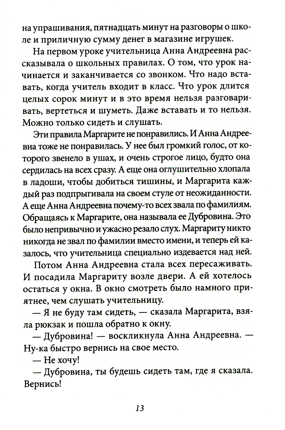 Что объединяет робких первоклассников с ветеранами из четвертого «Б»? Неисправимых хулиганов с крепкими хорошистами? Тех, чьи родственники участвуют во всех праздниках, с теми, чьи мама с папой не приходят даже на родительские собрания? Все они в восторге от фразы «Уроков не будет!» - даже те, кто любит учиться! Слова-заклинания, слова-призывы! Рассказы из сборника Виктории Ледерман «Уроков не будет!» посвящены ученикам младшей школы, с первого но четвертый класс. Этим детям еще многому предстоит научиться: терпению и дисциплине, умению постоять за себя и дипломатии. А неприятные сюрпризы сыплются на них уже сейчас! Например, на смену любимой учительнице французского - той, которая ничего не задает и не проверяет, - приходит строгая и требовательная. Или отвратительный Мирон Соломатин придумывает тебе обидную кличку Плюшка - всего лишь потому, что ты не дала ему списать. Хочется ли ходить в школу, когда там происходит такое? Хочется только кричать во все горло: «Уроков не бу-у-удет!» Виктория Ледерман, как всегда, блестяще описывает переживания героев - и подсказывает им лучший выход из ситуации. Ни капли назидательности: следить за приключениями придуманных ею мальчишек и девчонок - сплошное удовольствие! Повесть «Календарь ма(й)я», отмеченная премией им. В. П. Крапивина, стала самой продаваемой книгой издательства «КомпасГид» в 2016 году. «Первокурсница» и «Всего одиннадцать! или Шуры-муры в пятом "Д"» тоже быстро завоевали любовь читателей всех возрастов, в России и за рубежом: еще бы, ведь от них невозможно оторваться, а в героях многие узнали себя. В 2017 году рукопись книги «Уроков не будет!» стала победителем «Корнейчуковской премии» в номинации «Проза для детей младшего возраста (зарубежные авторы)».| Издательство | ИД КомпасГид |