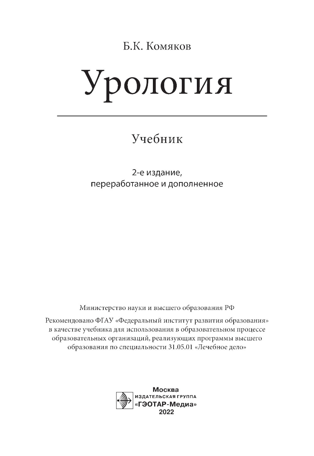 Аннотация: Урология. Учебник. 2-е изд., перераб. и доп