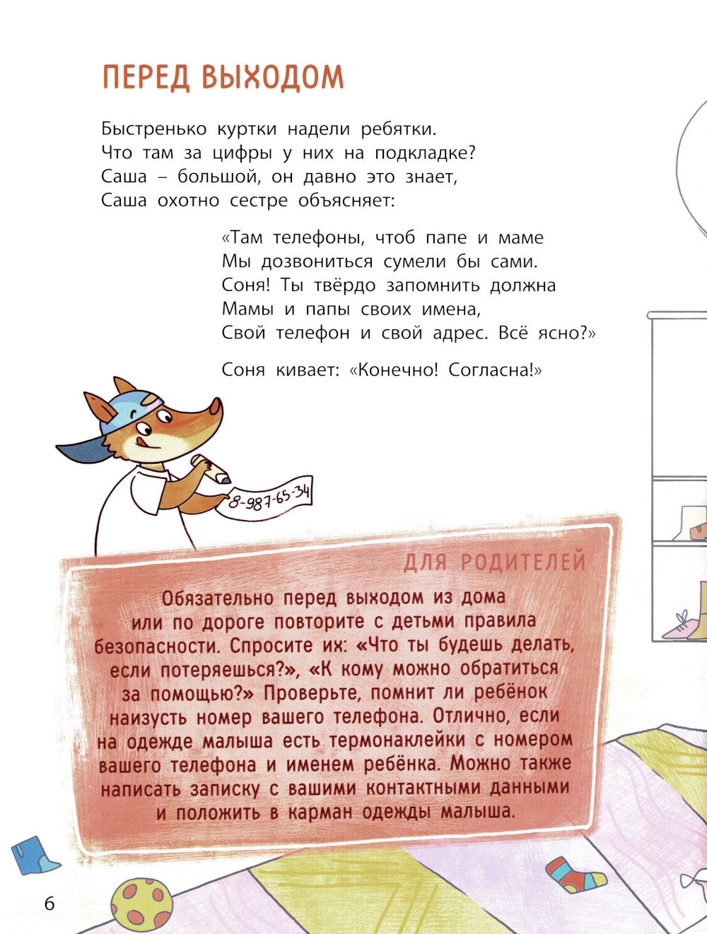 В городе столько интересного для маленьких детей: весёлые аттракционы, яркие витрины магазинов, многолюдные парки... Но город таит в себе и много опасностей! Как не потеряться на улицах? Что делать, если вдруг не видишь рядом родителей? Как правильно разговаривать с незнакомыми людьми? Весёлая, динамичная история в стихах о приключениях мальчика Саши и его сестренки Сони поможет детям усвоить правила безопасного поведения в городе. В книгу включены рекомендации для родителей, подготовленные опытным инструктором по безопасности. Издание подготовлено в сотрудничестве с Поисково-спасательным отрядом «Лиза Алерт». Для чтения взрослыми детям.| Издательство | ЭНАС-КНИГА |