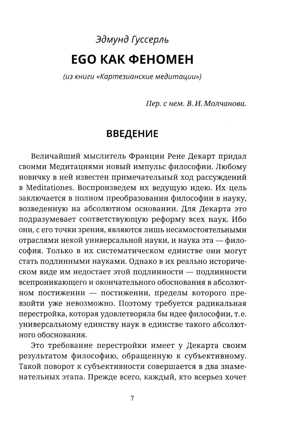 Эдмунда Гуссерля и Мартина Хайдеггера связывали не только общие научные, но и личные отношения: Хайдеггер считался «наследником» Гуссерля, его самым способным учеником. Гуссерль, основатель феноменологии, предложил метод, который предполагает своего рода медитацию по Декарту («картезианское сомнение»), «подвешивание» (проблематизирование) даже самых, казалось бы, очевидных вещей с целью исследования субъективного сознательного опыта. Этот метод оказал большое влияние на Хайдеггера ,который позже, однако, перешел к изучению конкретного человеческого существования («экзистенции»). Гуссерль отнёсся к исследованиям Хайдеггера отрицательно, что послужило причиной охлаждения между двумя философами. В данной книге приводятся работы Э. Гуссерля и М. Хайдеггера, касающиеся понятия «Я» («Эго»), которые дают представление о сходстве и различии позиций двух выдающихся мыслителей.| Издательство | Родина |
