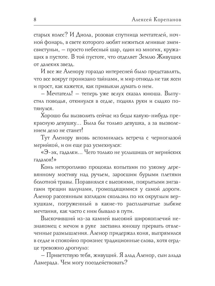 Беззаботно проходит жизнь юного Аленора на прекрасном острове Мери: рыцарские турниры, охота, шумные застолья… Но однажды юноша услышал предсказания, одно из которых вскоре сбывается. И в этом калейдоскопе событий постепенно становится ясно, что перипетии жизни Аленора очень похожи на те трагедии, которые уже когда-то случались в истории. Но есть ли у них режиссер?..| Издательство | Т8 RUGRAM |