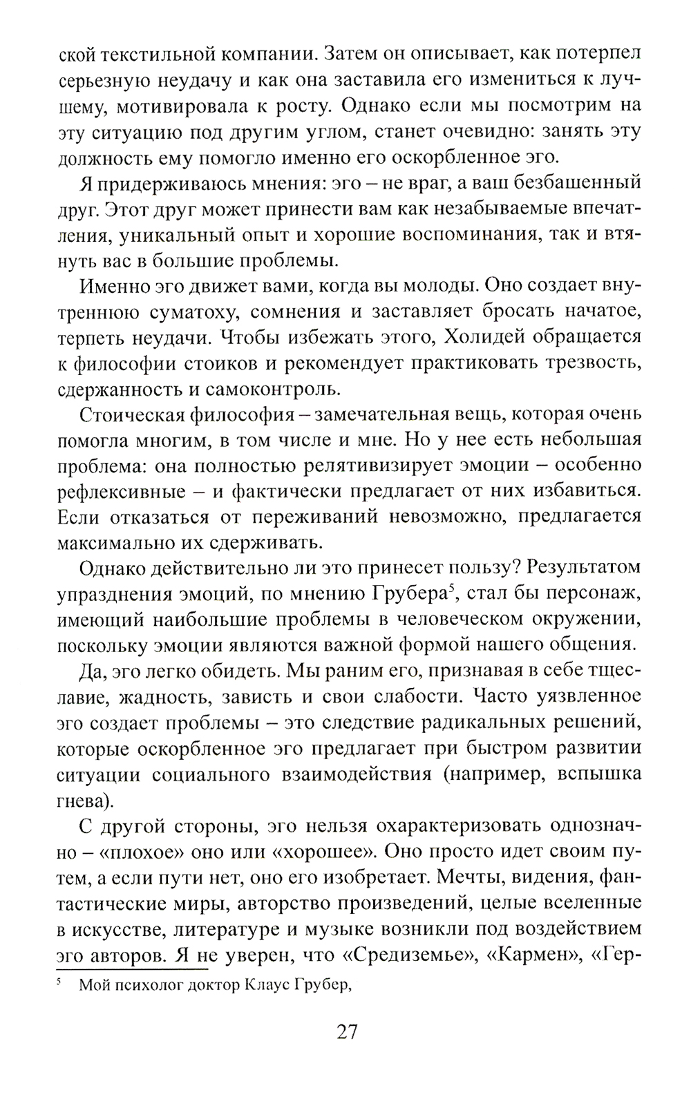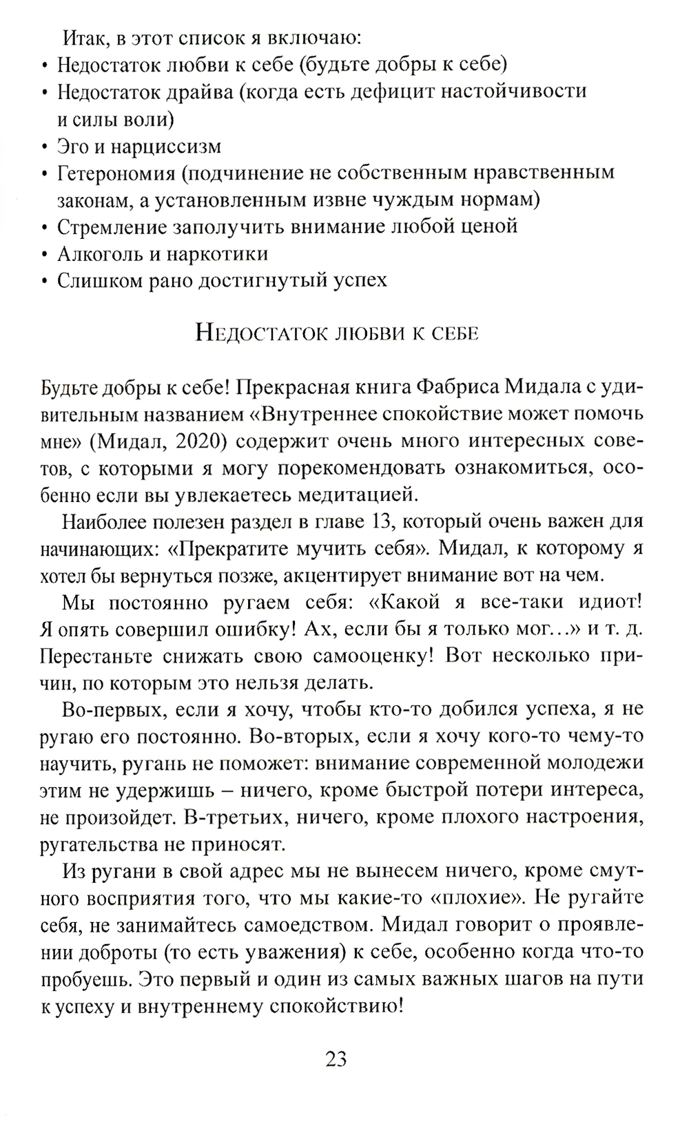 Эта книга не только для лидеров, которые честно вкладывают силы и время в свою успешную карьеру, но и для достигших в жизни определенных высот - и всё еще не удовлетворенных результатом. Незаменимый путеводитель для людей, потерявших мотивацию и драйв. Эта книга для людей, задающихся неудобными вопросами и ощущающих свою малоценность из-за намеченных жизненных планов, которые не реализовываются. Эта книга для тех, кто устал от несбывшегося, но не разочаровался в настоящем и будущем. Перед вами - не руководство по прокачке своей мотивации и не пошаговая инструкция по достижению успеха (и даже не сборник медитативных техник, которые помогут быстро избавиться от сильного стресса). Книга эта работает «вдолгую» - она закладывает основу настоящей успешности. Как именно? Вы узнаете, если прочитаете ее внимательно.| Издательство | Грифон |