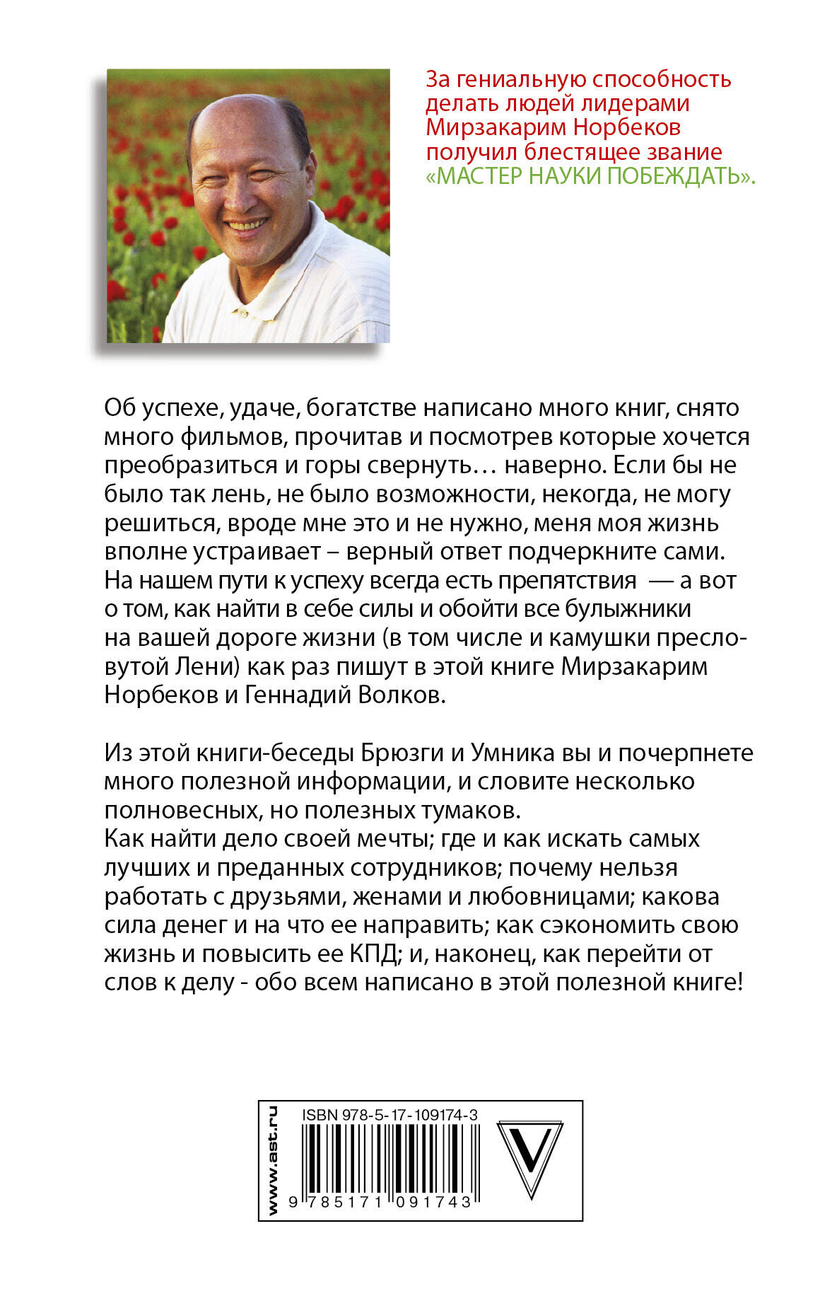 Как не бояться успеха и правильно действовать, когда вам наконец-то улыбнулась фортуна, - в ироничных беседах Мирзакарима Норбекова и Геннадия Волкова! Интересный подход, взгляд со стороны на вашу жизнь - и несколько полезных тумаков, побуждающих к действию.| Издательство | ИЗДАТЕЛЬСТВО "АСТ" |