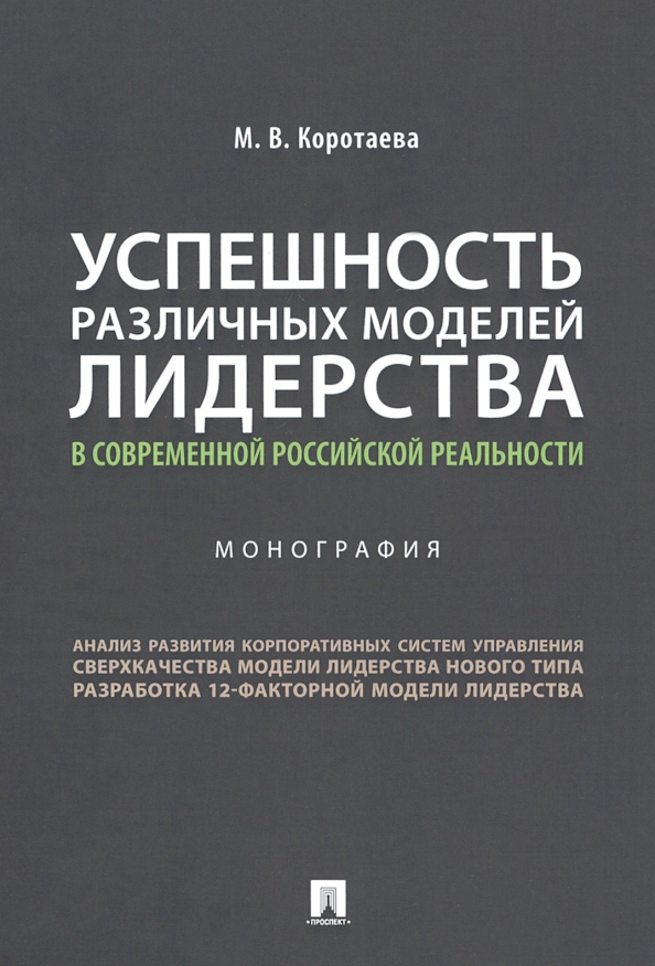 Аннотация: Успешность различных моделей лидерства в современной российской реальности. Монография