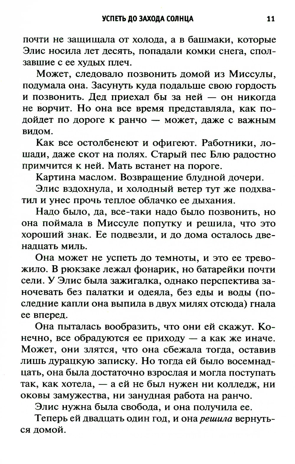 Ложь. Любовь. Убийство. Многое может случиться до захода солнца. Найдено тело молодой женщины - громкое дело для курортных земель Западной Монтаны. Но для Бодин это не просто убийство, а напоминание о старой потере. Двадцать пять лет назад ее тетя Элис бесследно исчезла, и теперь Бодин видит связь со страшными событиями прошлого. Возвращение Элис и мрачная история, которую она расскажет, должны помочь в раскрытии дела. Бодин и ее напарник Кол-лен берутся сложить воображаемый пазл. И пока герои погружаются в прошлое и распутывают мрачные тайны Западной Монтаны, солнце спешит скрыться за горизонтом.