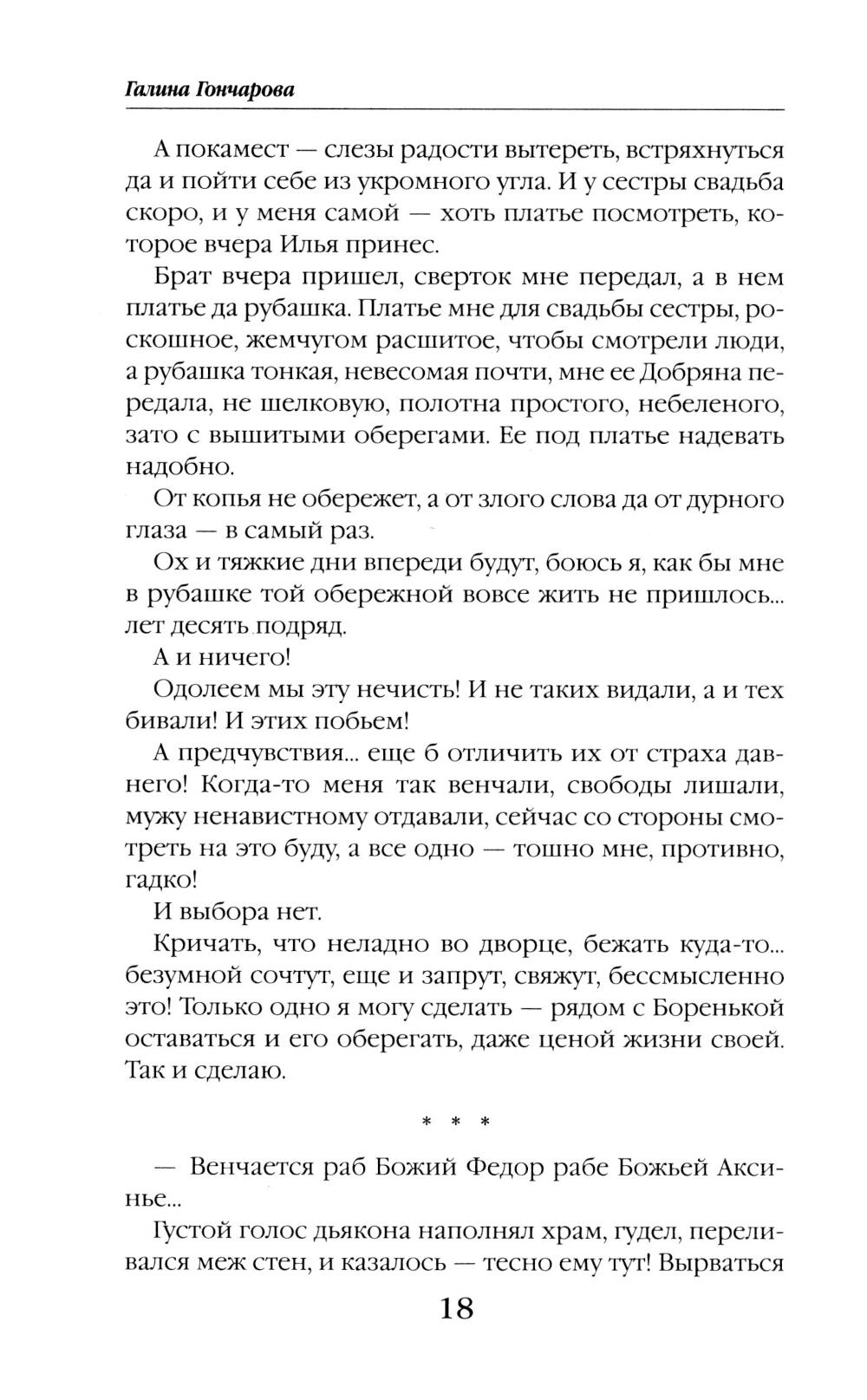 Радость великая нынче на Ладоге стольной - царевич женился. Мало того, не успели праздники отгреметь - и государь Борис Иоаннович жениться решил. Новая царица теперь у Россы, государыня Устинья Алексеевна. А только все одно неспокойно в стране. Плетут интриги бояре, собирают войско соседи, да и зло, которое в палатах царских притаилось, сдаваться не намерено. Есть у них еще возможность за себя побороться, есть кого в жертву принести своим планам, и тянутся жадные руки к короне Росской. Собирается буря, поднимается ветер. Вот-вот уже грянет...| Издательство | Эксмо |