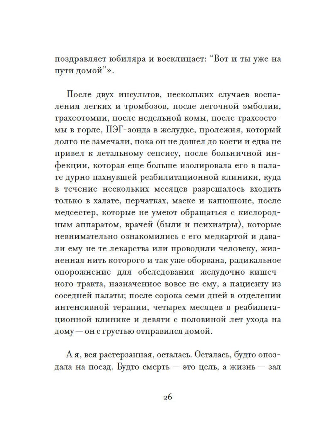 Этот сборник эссе - не просто история болезни и ухода. Это честный, лишенный пафоса дневник любви, которая расцвела заново в самое трудное время. Габриеле фон Арним пишет не о жертвенности - она рассказывает о буднях, где совместное приготовление завтрака становится ритуалом, а приход друзей - счастливым событием. О тесно переплетенных страхе, мужестве и любви. О моменте, когда «навсегда» оказывается короче, чем мечталось. Но главное - о том, что даже в отчаянии есть место смеху, а в горечи потерь - благодарности за каждый прожитый вместе день.| Издательство | КоЛибри |