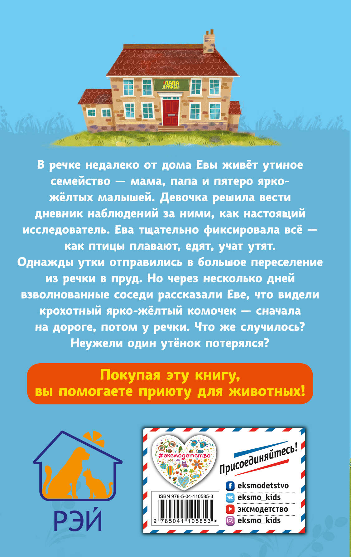 1. В речке недалеко от дома Евы живёт утиное семейство - мама, папа и пятеро ярко-жёлтых малышей. Однажды утки отправились в большое переселение из речки в пруд. Но через несколько дней взволнованные соседи рассказали Еве, что видели крохотный ярко-жёлтый комочек - сначала на дороге, потом у речки. Что же случилось? Неужели один утёнок потерялся? 2. Если вы когда-нибудь хотели узнать, как работает центр спасения животных, - вам сюда! Ева и её брат Карл поделятся не только радостями общения со множеством зверей, но и трудностями ухода за ними! 3. Белая бумага, очаровательные иллюстрации, небольшой текст, крупный шрифт - подходит для тех, кто только учится читать! 4. Каждая история рассказывает не только о помощи животному, но и является детективом с логикой, понятной ребёнку. 5. Покупая эти книги, вы помогаете настоящему благотворительному фонду! «Лапа Дружбы» - это одна из программ Фонда помощи бездомным животным «РЭЙ»!| Издательство | ООО "Издательство "Эксмо" |