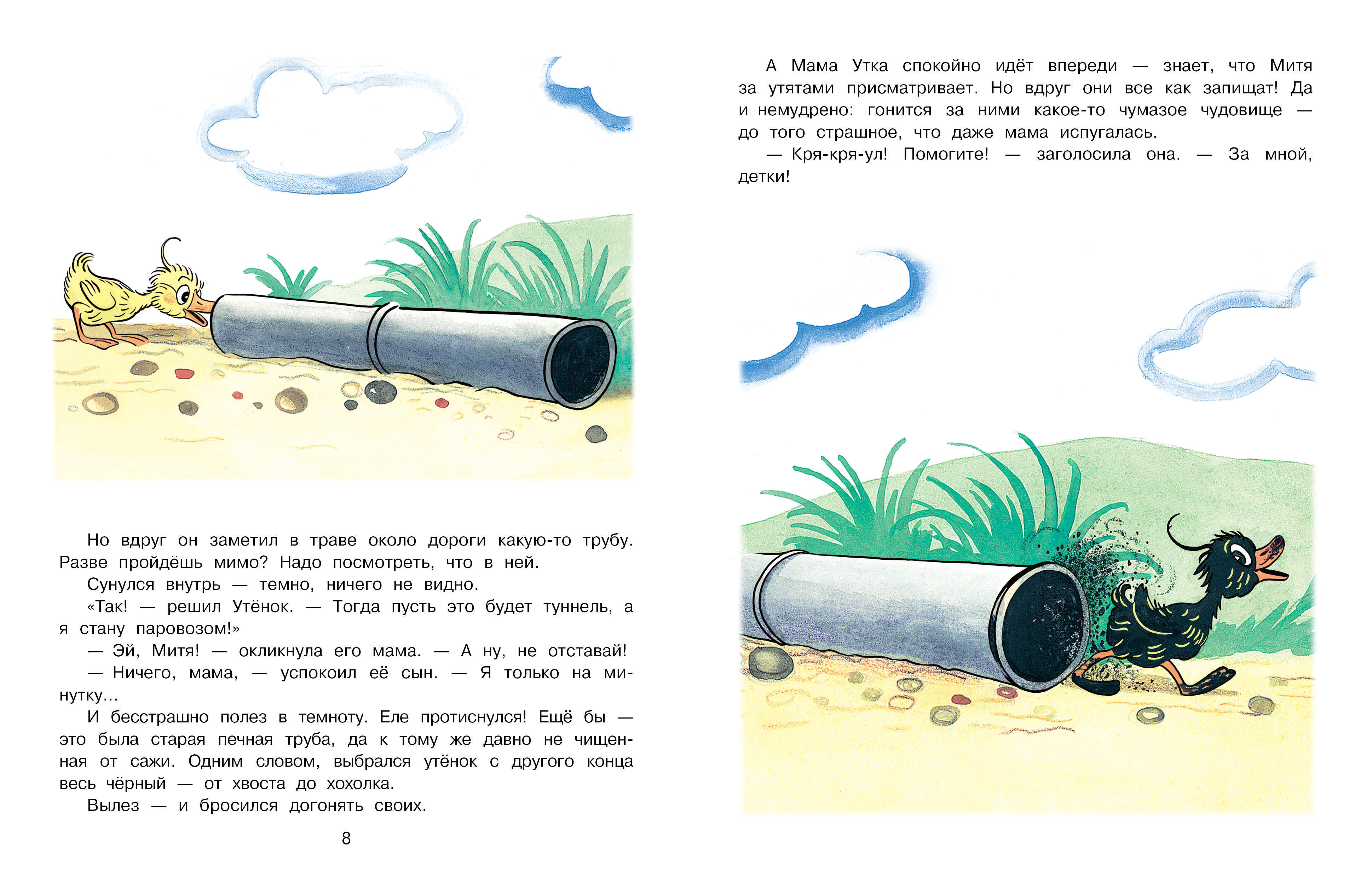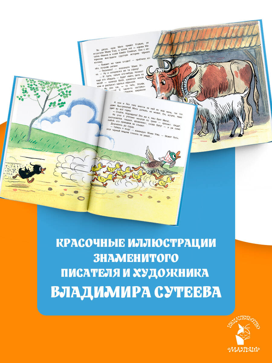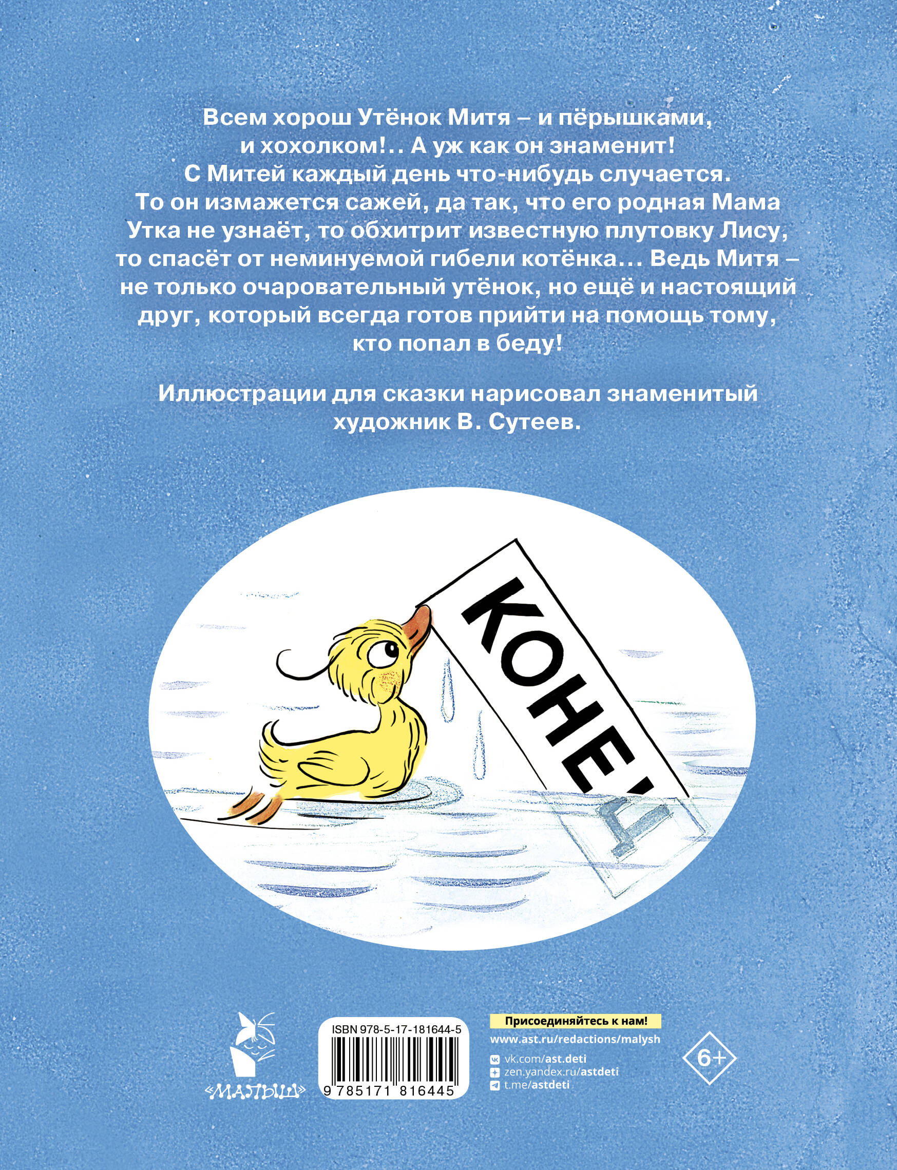 Всем хорош Утёнок Митя - и пёрышками, и хохолком!.. А уж как он знаменит! С Митей каждый день что-нибудь случается. То он измажется сажей, да так, что его родная Мама Утка не узнаёт, то обхитрит известную плутовку Лису, то спасёт от неминуемой гибели котёнка… Ведь Митя - не только очаровательный утёнок, но ещё и настоящий друг, который всегда готов прийти на помощь тому, кто попал в беду! Иллюстрации для сказки нарисовал знаменитый художник В. Сутеев.| Издательство | Издательство "АСТ" |