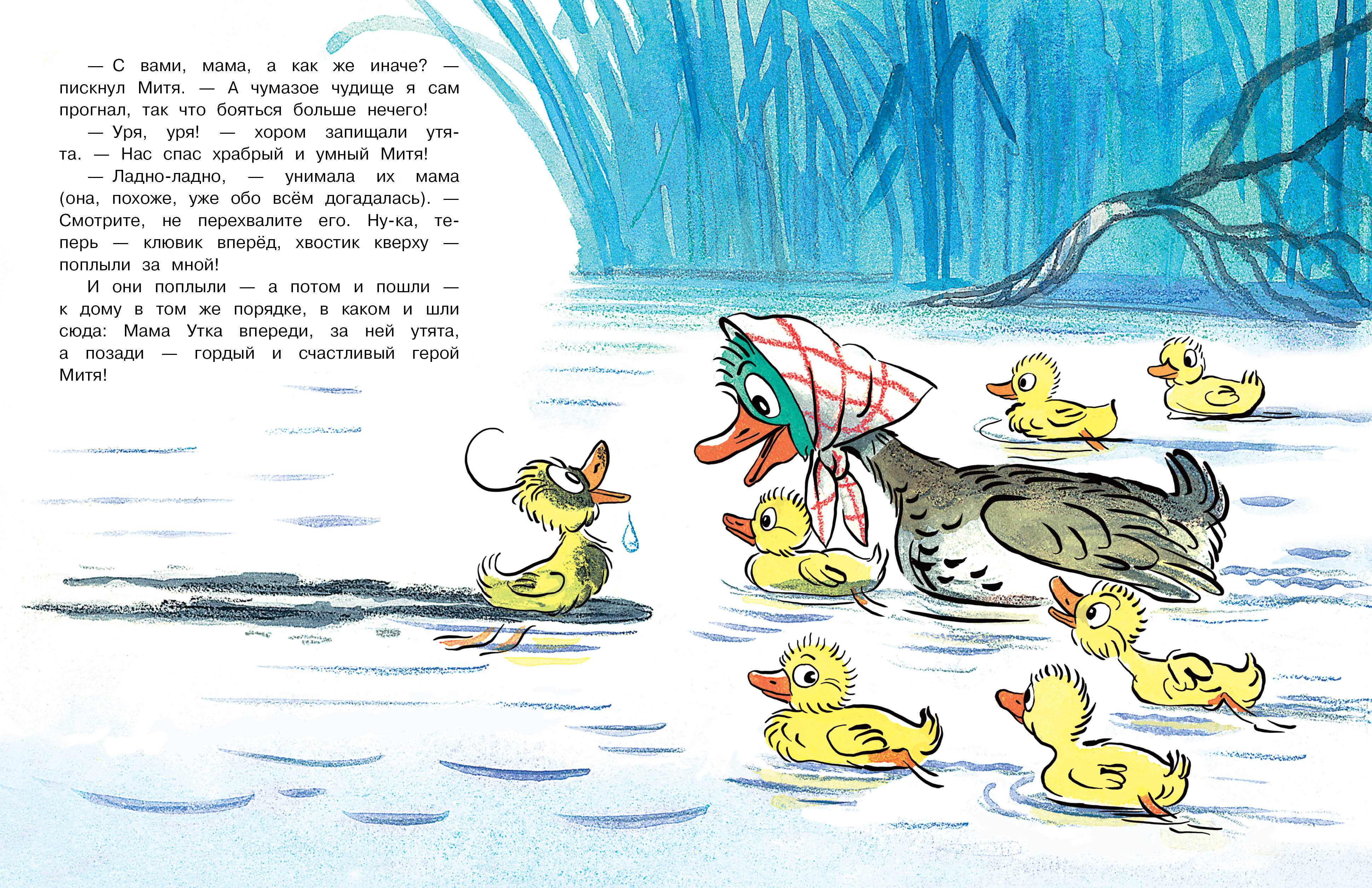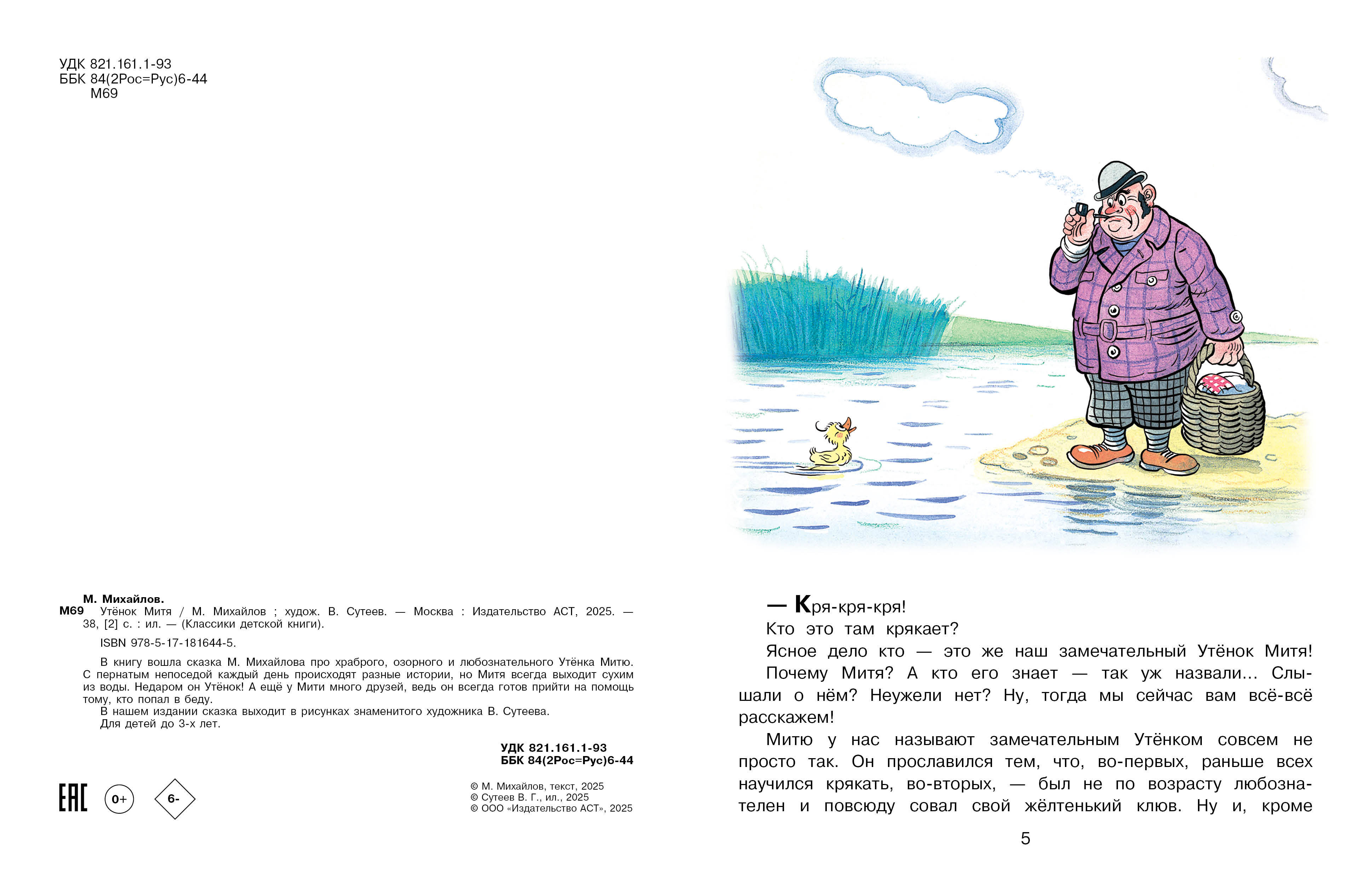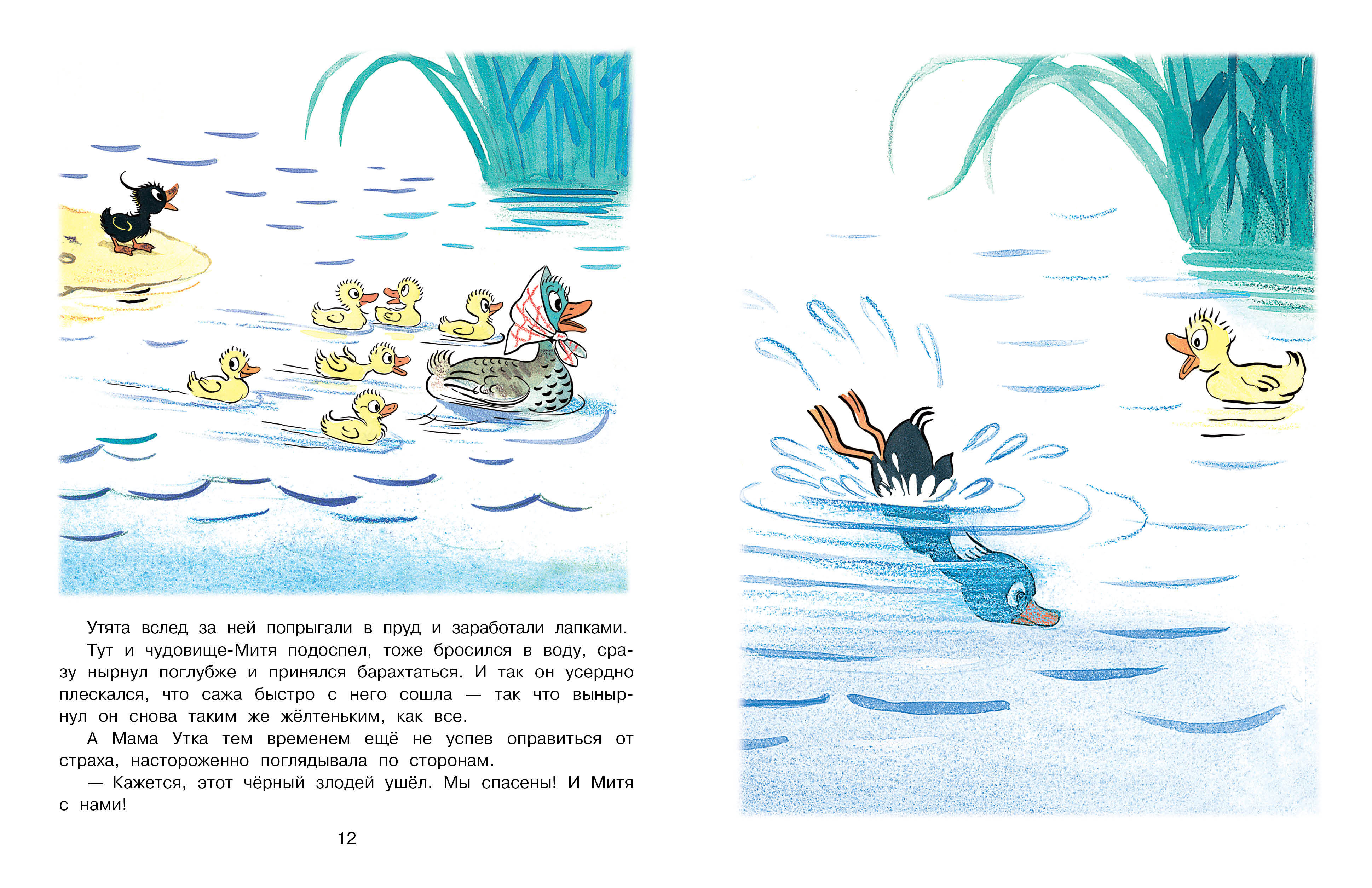 Всем хорош Утёнок Митя - и пёрышками, и хохолком!.. А уж как он знаменит! С Митей каждый день что-нибудь случается. То он измажется сажей, да так, что его родная Мама Утка не узнаёт, то обхитрит известную плутовку Лису, то спасёт от неминуемой гибели котёнка… Ведь Митя - не только очаровательный утёнок, но ещё и настоящий друг, который всегда готов прийти на помощь тому, кто попал в беду! Иллюстрации для сказки нарисовал знаменитый художник В. Сутеев.| Издательство | Издательство "АСТ" |